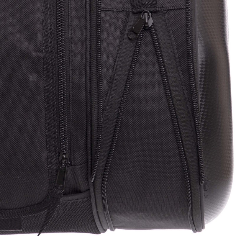 Каждый кофр имеет по два отдела. Один отдел основной и один небольшой сетчатый. Основной отдел закрывается на сдвоенную молнию.