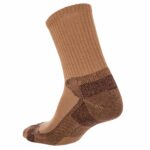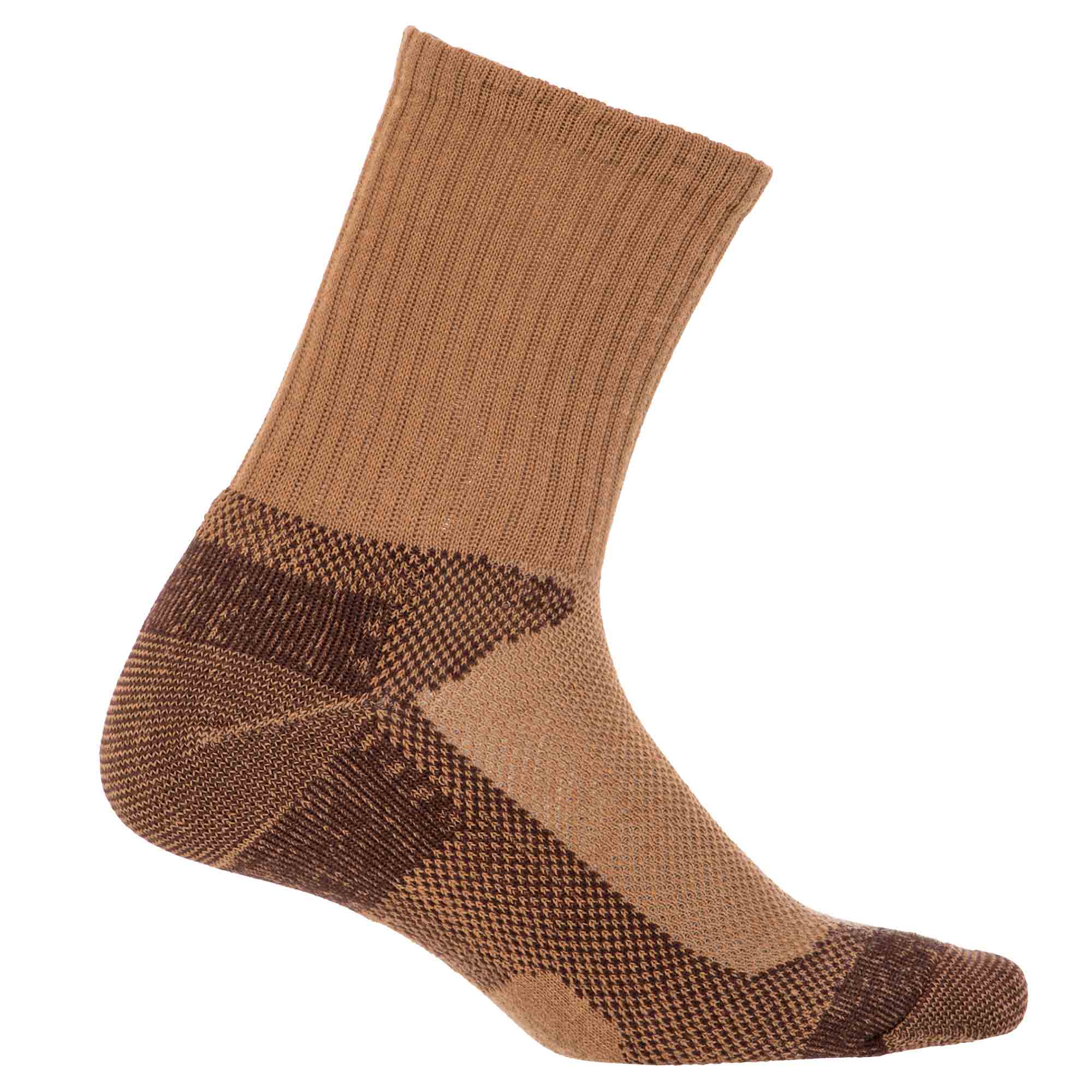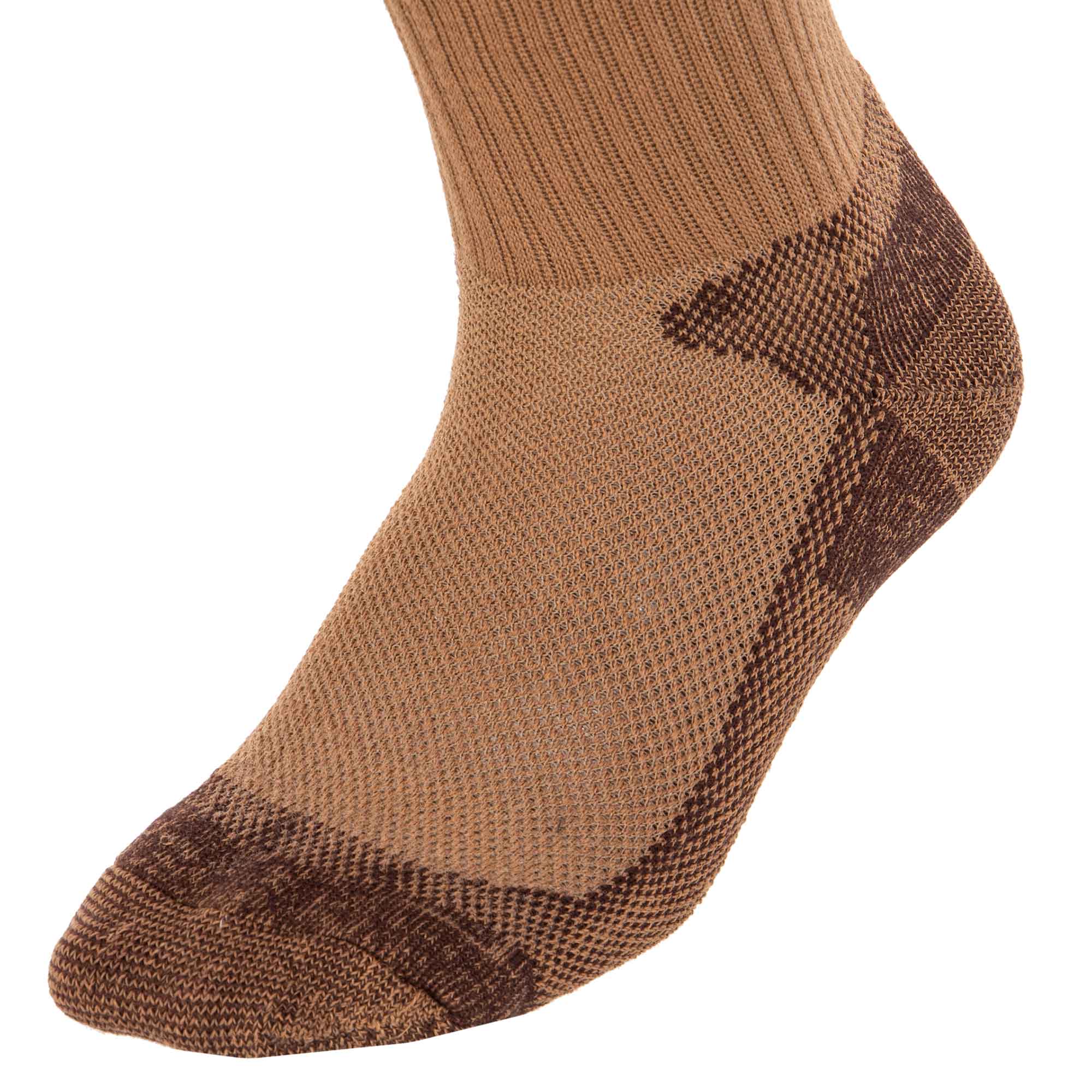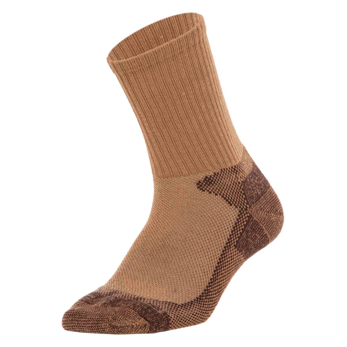 Термоноски Tactical были разработаны как элемент экипировки для длительных переходов в зимнее время (турпоход, охота, альпинизм), однако пользуются широкой популярностью и в повседневной жизни. Для их изготовления используется смесовая нить, которая включает хлопок, волокна нейлона, спандекса и полиэстера. Этот материал отводит влагу с кожи эффективнее, чем чистый хлопок – а, значит, ноги остаются сухими и не подвергаются таким неприятностям как переохлаждение и потёртости. Также он характеризуется эластичностью, за счет чего носки не только надежно держаться на ноге, но и оказывают компрессионное воздействие, снижая усталость. Мысок и пятка носков усилены дополнительной нитью и устойчивы к истиранию.