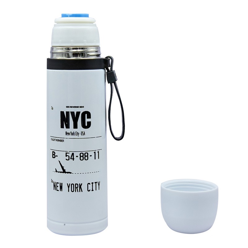Термос состоит из двустенного корпуса и крышки, которую можно использовать как чашку для питья. Для их изготовления используют пищевую нержавеющую сталь, безопасную для здоровья и невосприимчивую к запахам. Термоизоляцию обеспечивает пластиковая пробка с резьбой, которая наряду с двойными стенками корпуса позволяет поддерживать температуру содержимого на протяжении впечатляющих 24 часов. Клапан в пробке позволяет быстро налить напиток, без необходимости отвинчивать пробку, не нарушая при этом герметичность. Чтобы случайно не уронить термос, к его корпусу прикреплён ремешок-ручка.