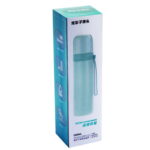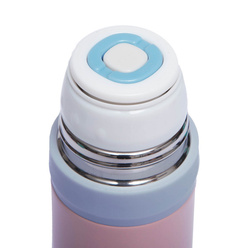 Термос состоит из двустенного корпуса и крышки, которую можно использовать как чашку для питья. Для их изготовления используют пищевую нержавеющую сталь, безопасную для здоровья и невосприимчивую к запахам. Термоизоляцию обеспечивает пластиковая пробка с резьбой, которая наряду с двойными стенками корпуса позволяет поддерживать температуру содержимого на протяжении впечатляющих 24 часов. Клапан в пробке позволяет быстро налить напиток, без необходимости отвинчивать пробку, не нарушая при этом герметичность. Чтобы случайно не уронить термос, к его корпусу прикреплён ремешок-ручка.