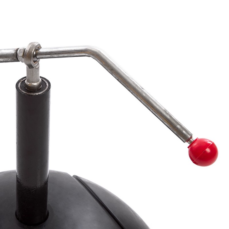 На стойке мяч закреплён под определённым углом и на определённой высоте. И угол, и высоту установки мяча можно регулировать в процессе использования тренажёра. Мяч свободно вращается на 360° вокруг своей оси.