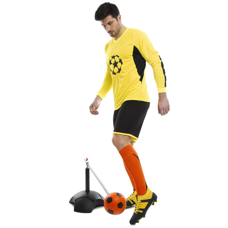 Конструкция футбольного тренажёра позволяет установить его в любой части поля или помещении, обеспечивая удобство проведения тренировок для отработки техники ударов, их точности, и скорости реакции. Тренажёр состоит из основания, которое обеспечивает его стабильное положение на любом покрытии. К основанию прикреплена стойка, на которой зафиксирован мяч.