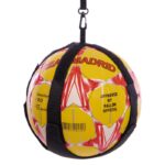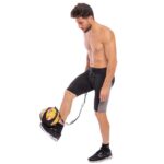 Тренажёр для отработки ударов и пасов позволяет тренироваться без партнёра и не бегать постоянно за мячом. Конструкция тренажёра очень проста и состоит из пояса, который можно настроить по обхвату, и специального крепления для мяча на липучках. Такое крепление позволяет использовать мячи любого размера.