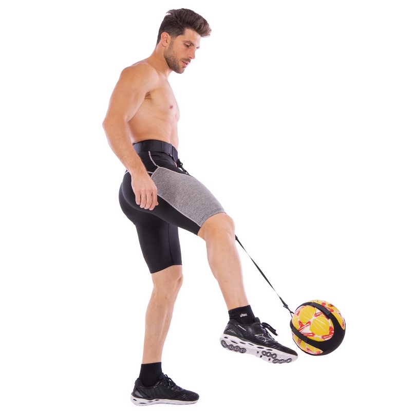 Тренажёр для отработки ударов и пасов позволяет тренироваться без партнёра и не бегать постоянно за мячом. Конструкция тренажёра очень проста и состоит из пояса, который можно настроить по обхвату, и специального крепления для мяча на липучках. Такое крепление позволяет использовать мячи любого размера.