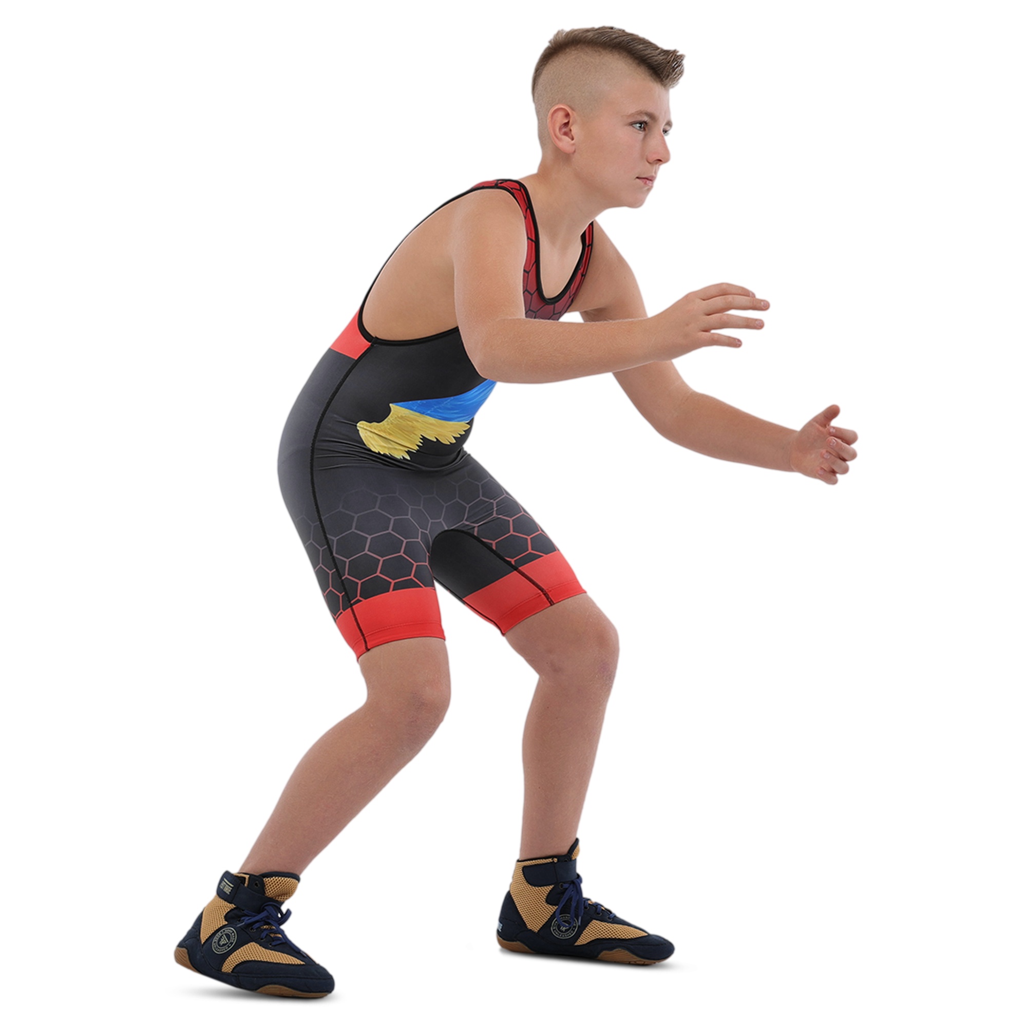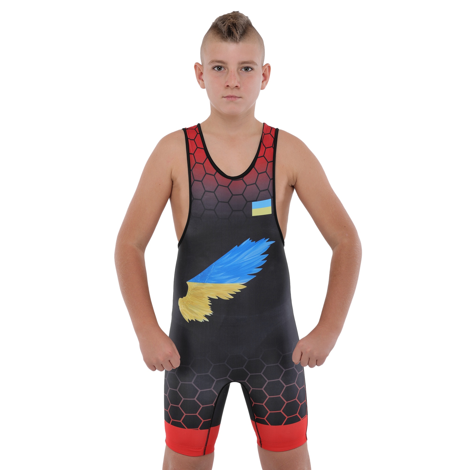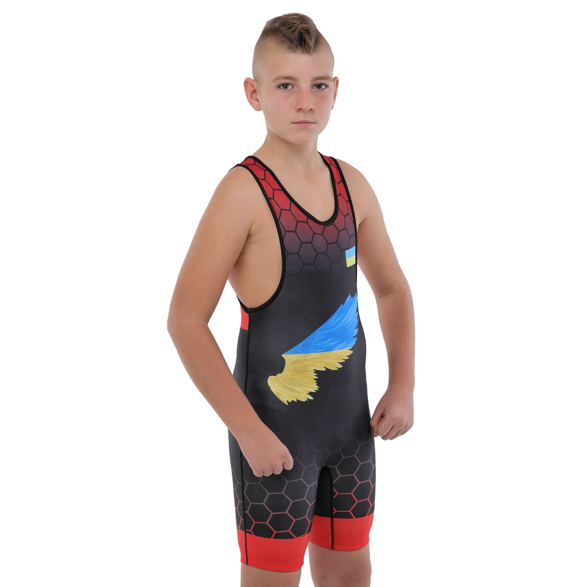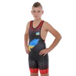 Трико для борьбы детское UKRAINE красный рост 120-170см