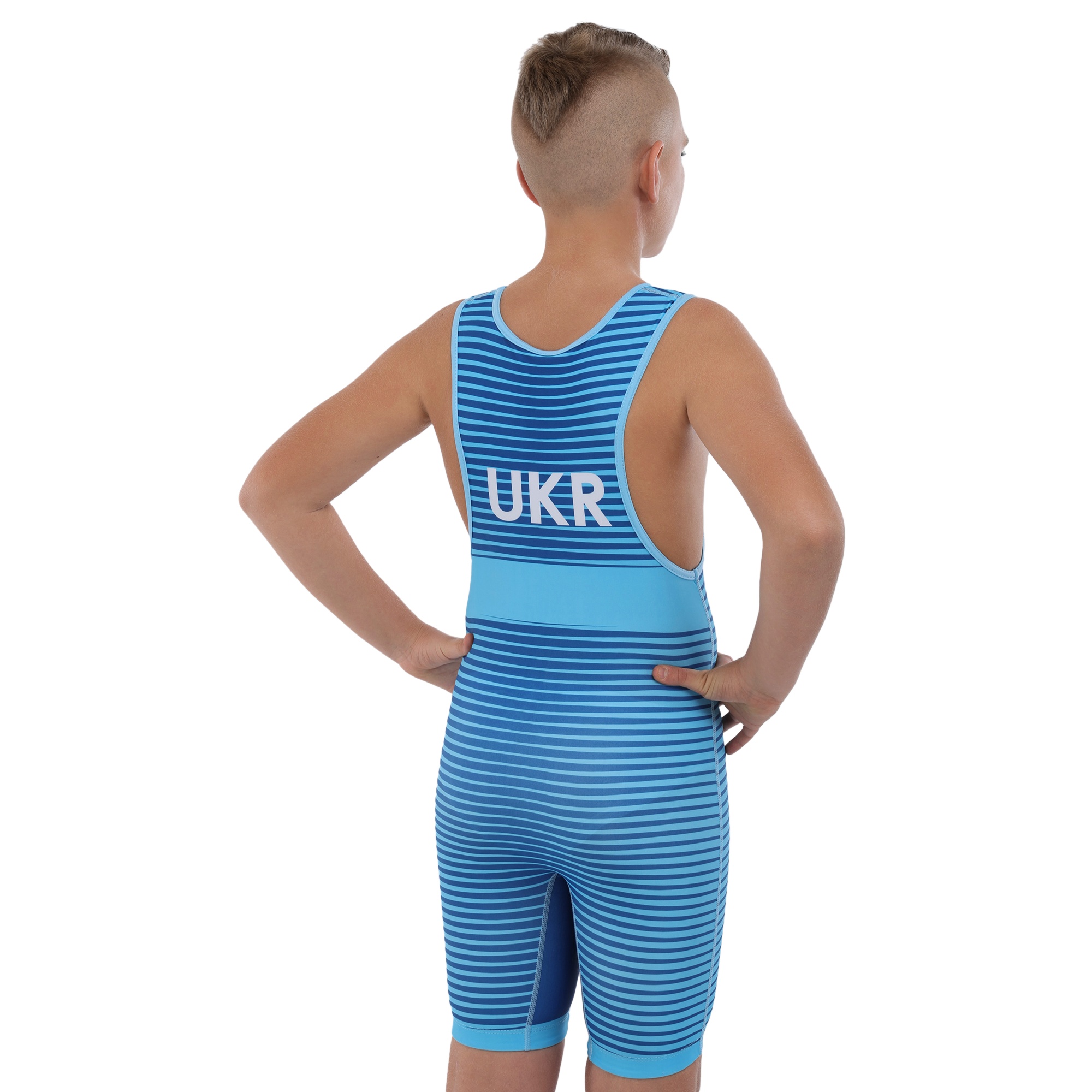 Трико для борьбы детское UKRAINE синий рост 120-160см