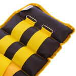 Манжеты изготовлены из высококачественного полиэстера. Мягкий, приятный на ощупь материал очень прочный на разрыв и устойчивый к износу. Каждая манжета разделена на пять равных отсеков, в которых находится наполнитель — песок. Продуманная конструкция предотвращает скапливание веса в одной точке и обеспечивает более равномерную, безопасную для суставов, нагрузку. Две поперечные ленты на липучке используются для фиксации манжет на запястьях или голенях. Они также не позволяют наполнителю пересыпаться в нижнюю часть манжет во время бега, прыжков в высоту или упражнений со скакалкой.