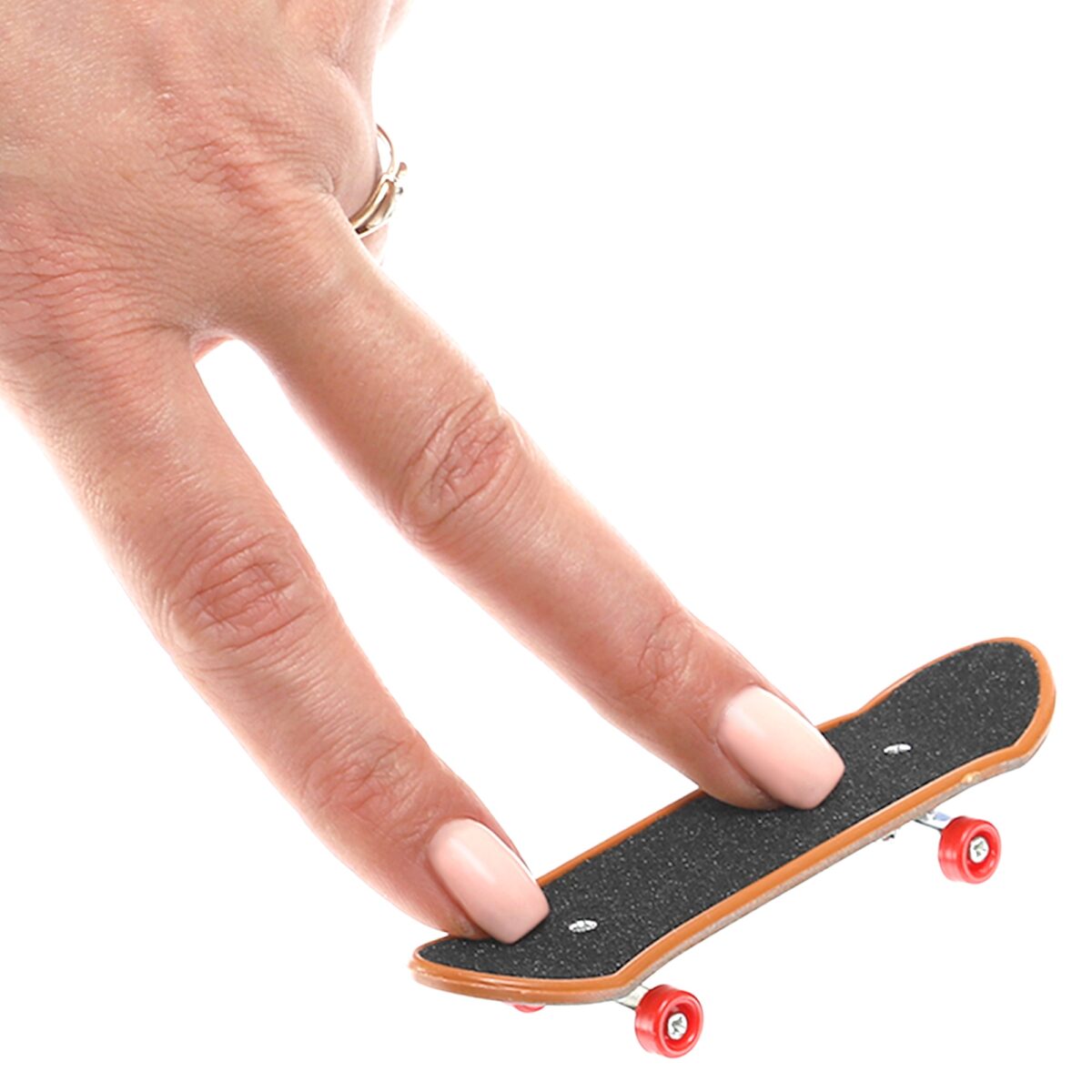 Фингер рипстик в комплекте — это аналог обычного рипстика в формате для пальцев, который добавляет дополнительные возможности для трюков. Его уникальная конструкция, где колёса могут поворачиваться под разными углами, позволяет выполнять вращения и скольжения, добавляя динамичности в игру.