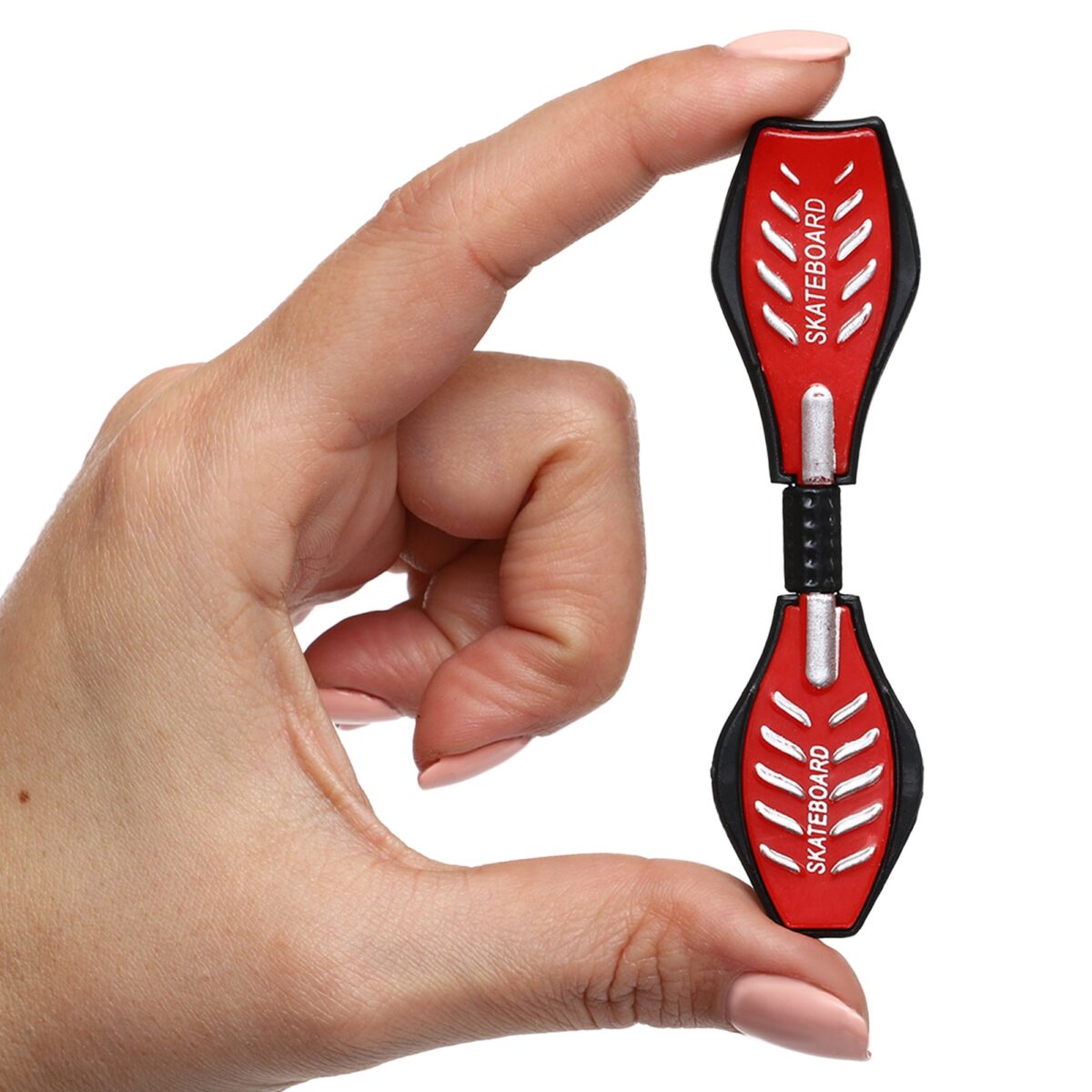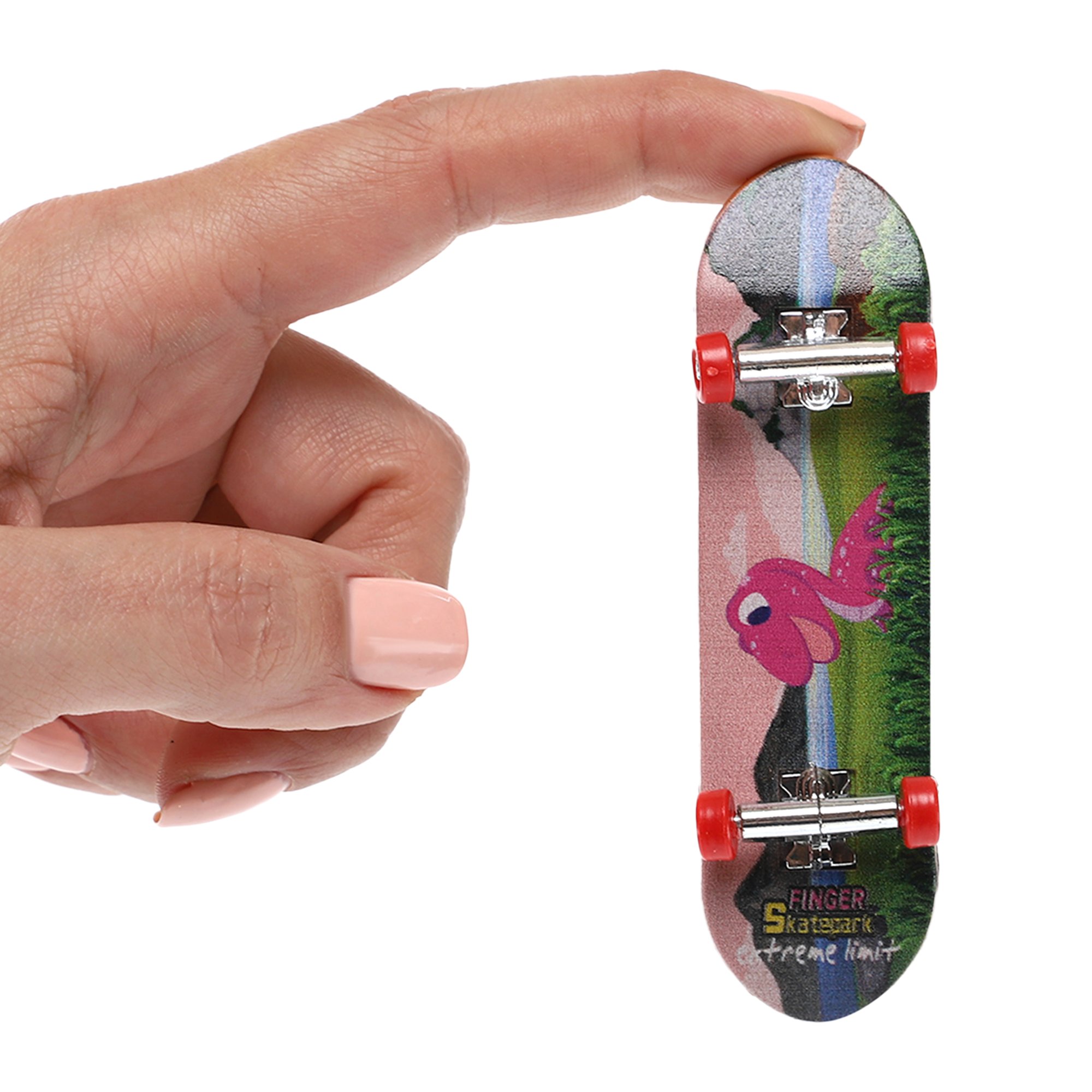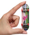 Фингерборд выполнен из прочного пластика, обеспечивая достаточную устойчивость и маневренность для выполнения сложных трюков, таких как флип, олли, гринд, кикфлип и другие популярные элементы скейтбординга. Благодаря компактным размерам и тщательно проработанной конструкции фингерборд идеально имитирует настоящие скейтбордные движения, что даёт возможность тренироваться как на столе, так и на специально созданных мини-парках.