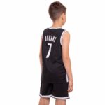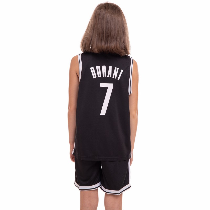 Шорты имеют свободный крой, не стесняющий движений, и эластичный пояс, оказывающий надежную фиксацию на талии. Майка выполнена в классическом баскетбольном стиле с глубоким вырезом и широкими бретелями. На груди и спине майки нанесен логотип знаменитого клуба Brooklyn Nets и номер 7, что делает форму еще более привлекательной для юных поклонников баскетбола.