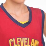 Майка в комплекте садится по фигуре, изготовлена с удобной v-образной горловиной, что обеспечивает максимальную свободу движений. Легкий и дышащий полиэстер позволяет коже дышать, предотвращая перегрев даже в самых интенсивных игровых моментах. Дизайн майки включает яркие клубные цвета и логотип Cleveland Cavaliers, что добавляет ей особого шарма и делает её узнаваемой на площадке. Шорты оснащены эластичным поясом, который обеспечивает удобную и надежную посадку. Они свободной посадки позволяют юным баскетболистам легко маневрировать и быстро передвигаться по площадке.