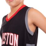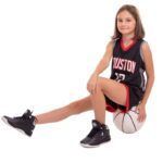 Форма создана для того, чтобы дать детям возможность почувствовать себя частью профессионального мира баскетбола. Основной элемент дизайна — это яркое и запоминающееся оформление в цветах клуба Houston Rockets, известного своей историей и достижениями в НБА.