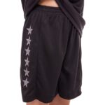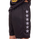 Шорты также выполнены из полиэстера, гарантируя лёгкость и долговечность. Удобная длина шорт позволяет свободно двигаться, не ограничивая движения на площадке. Эластичный пояс и шнуровка обеспечивают плотную и удобную посадку, что особенно важно для активных игр. Дополнены контрастными вставками и эмблемой клуба, что придает им стильный и профессиональный вид.