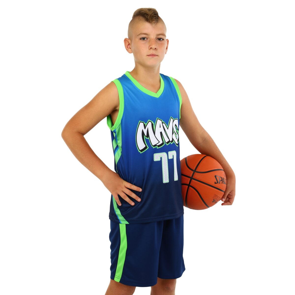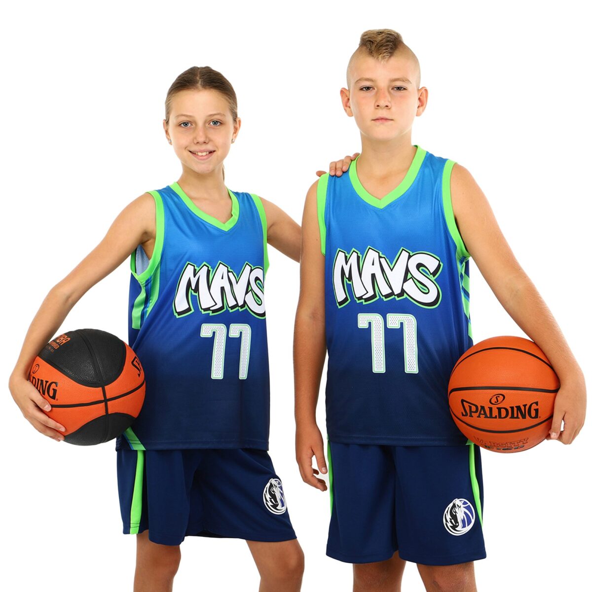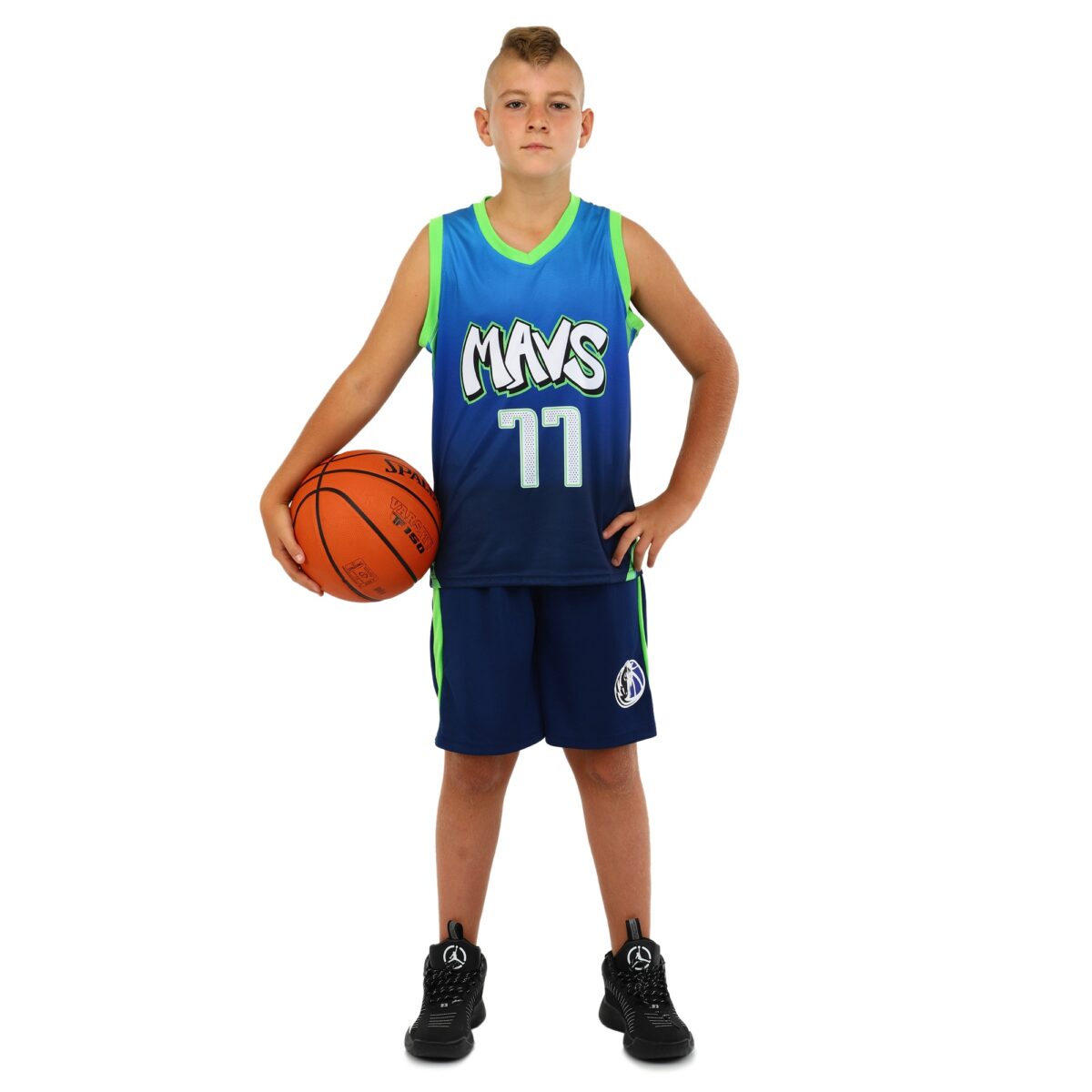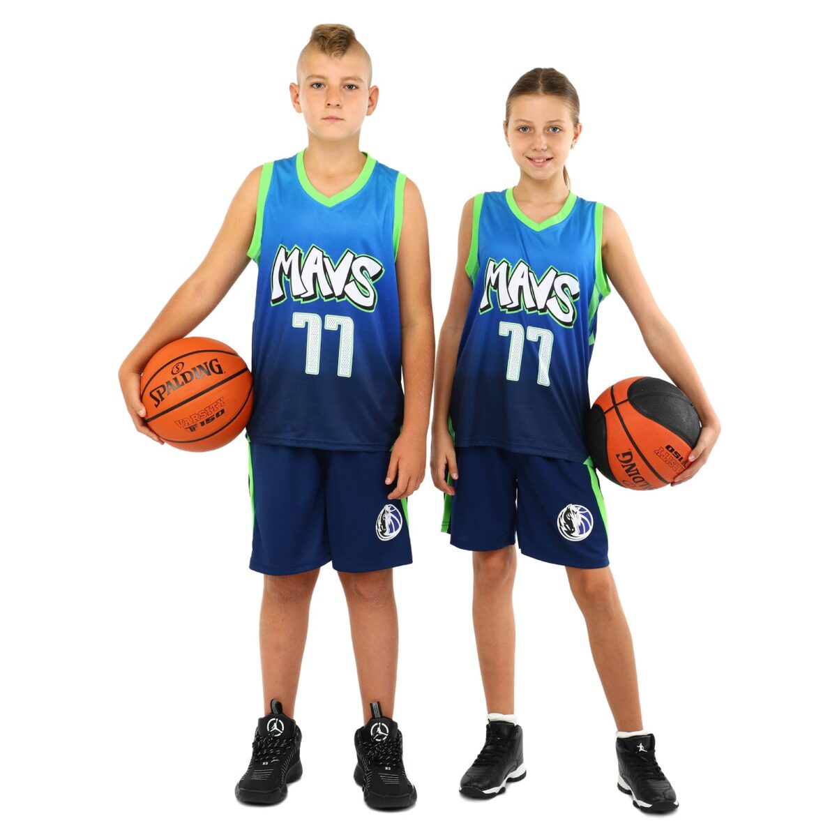 Форма баскетбольная детская NBA клуб Mavs 77 темно-синий-голубой-салатовый