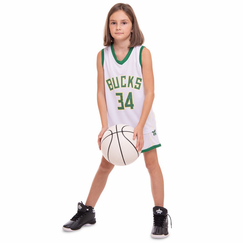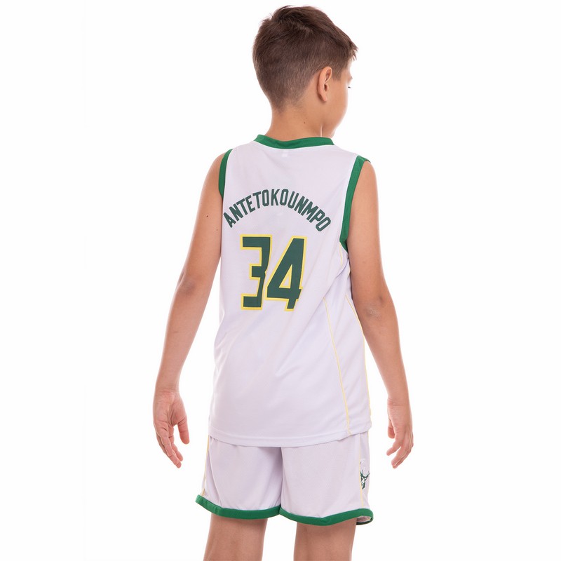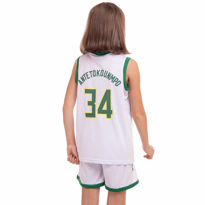 Форма баскетбольная детская NBA клуб Milwaukee Bucks 34 белый-зеленый
