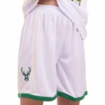Цветовая палитра формы в белых и зеленых оттенках не только соответствует цветам клуба Milwaukee Bucks, но и придает комплекту современный и стильный вид. На майке и шортах нанесены логотипы команды и номера, выполненные с использованием качественной печати, которая не выцветает и не стирается со временем.
