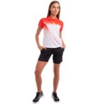 Футболка имеет классический крой с коротким рукавом, обеспечивая свободу движений и оптимальную вентиляцию. Шорты оснащены удобными боковыми карманами, которые позволяют хранить мелкие предметы, такие как ключи или резинка для волос, без необходимости покидать тренировочную площадку. Эластичный пояс шорт обеспечивает надежную посадку, не создавая дискомфорта во время интенсивных движений.