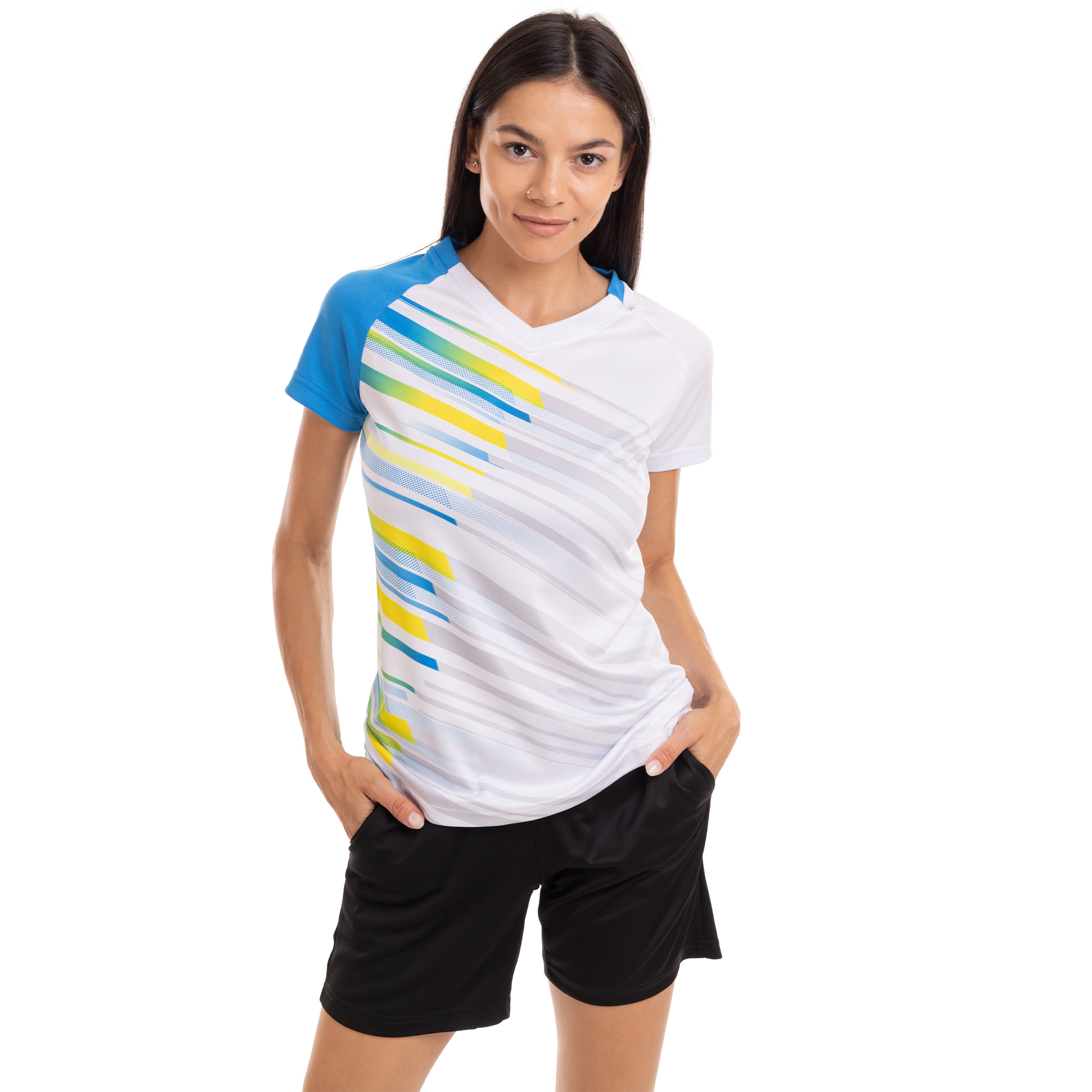 • Яркие цвета подчеркивают спортивный дух и энергичность, что помогает спортсменкам чувствовать себя уверенно и мотивированно.