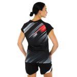 Футболка имеет облегающий крой, который подчеркивает фигуру и обеспечивает отличную посадку. Рукава футболки короткие, что позволяет коже дышать и предотвращает перегрев во время интенсивных тренировок. Горловина выполнена из мягкой ткани, которая не натирает кожу и обеспечивает максимальный комфорт.