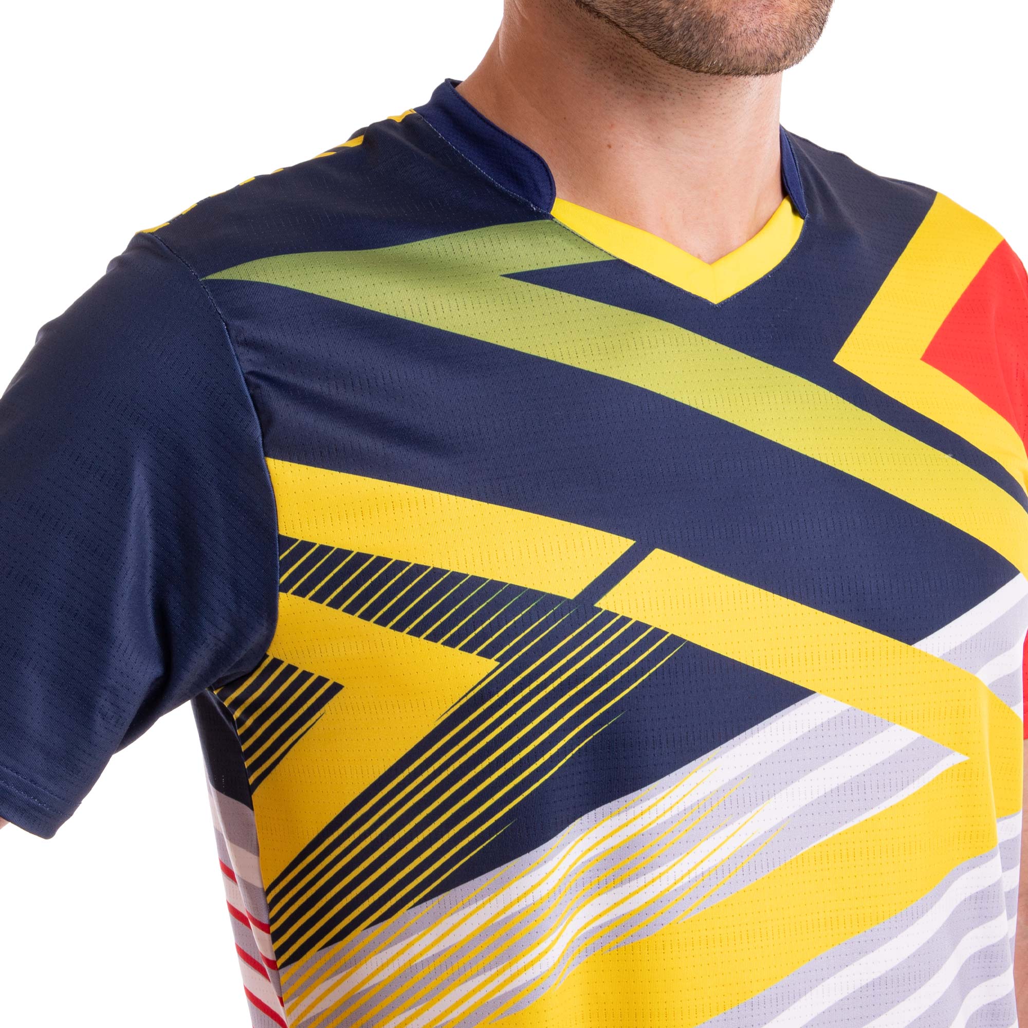 Футболка имеет классический крой, который подходит для любого типа фигуры, и способствует максимальному комфорту во время игры. Дизайн футболки стильный и современный, что позволяет чувствовать себя уверенно на площадке.