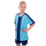 Для игр и тренировок по футболу можно использовать детскую футбольную форму. Комплект состоит из шорт и футболки с коротким рукавом. Форма имеет свободный крой и подходит для активных занятий спортом.