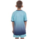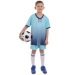 Для игр и тренировок по футболу можно использовать детскую футбольную форму. Комплект состоит из шорт и футболки с коротким рукавом. Форма имеет свободный крой и подходит для активных занятий спортом.