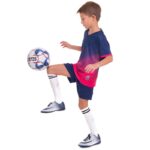 Для игр и тренировок по футболу можно использовать детскую футбольную форму. Комплект состоит из шорт и футболки с коротким рукавом. Форма имеет свободный крой и подходит для активных занятий спортом.