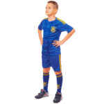 Форма футбольная детская комплект футболка шорты и гетры с символикой сборной УКРАИНА синяя