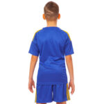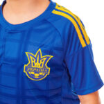 Детская форма с символикой сборной Украины предназначена для активных игр и тренировок молодых футбольных поклонников, обеспечивая комфорт и стиль во время спортивных мероприятий.