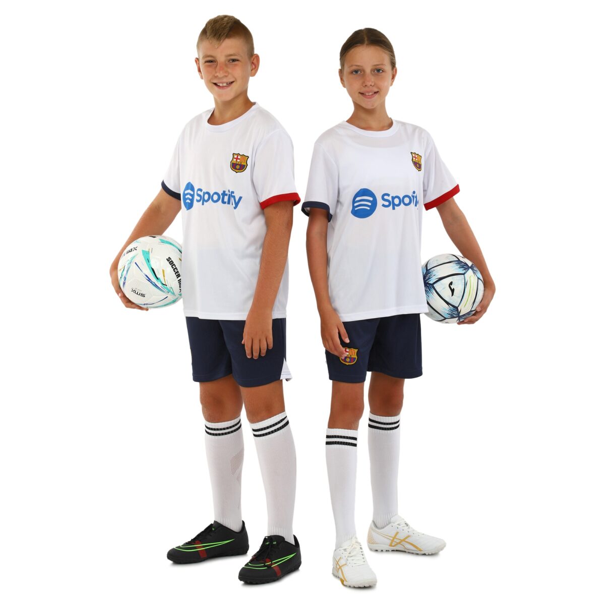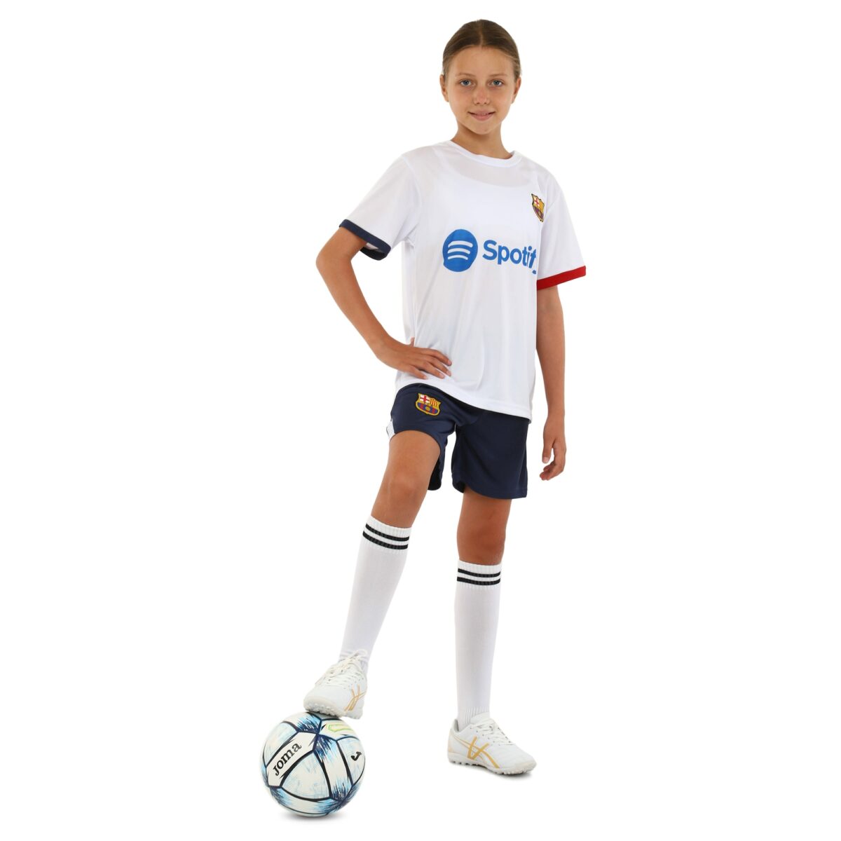 Форма футбольная детская с символикой футбольного клуба BARCELONA гостевая 2024 XS-XL белый-синий