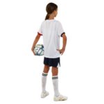 Футболка имеет свободный крой для максимальной свободы движений и удобства во время игры. Шорты обеспечивают отличную посадку благодаря эластичному поясу с регулируемым шнурком. Обе части формы украшены официальной символикой ФК Барселона, что делает её не только функциональной, но и стильной.