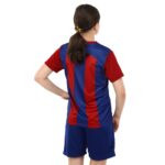 Футбольная форма в красно-синих тонах отлично подойдет для занятий футболом. Даже если ваш ребенок не посещает секцию, а просто любит попинать мяч во дворе на досуге, эта форма — отличный вариант. Она легкая и комфортная, подходит для активного досуга. Также в ней можно болеть за любимую команду.