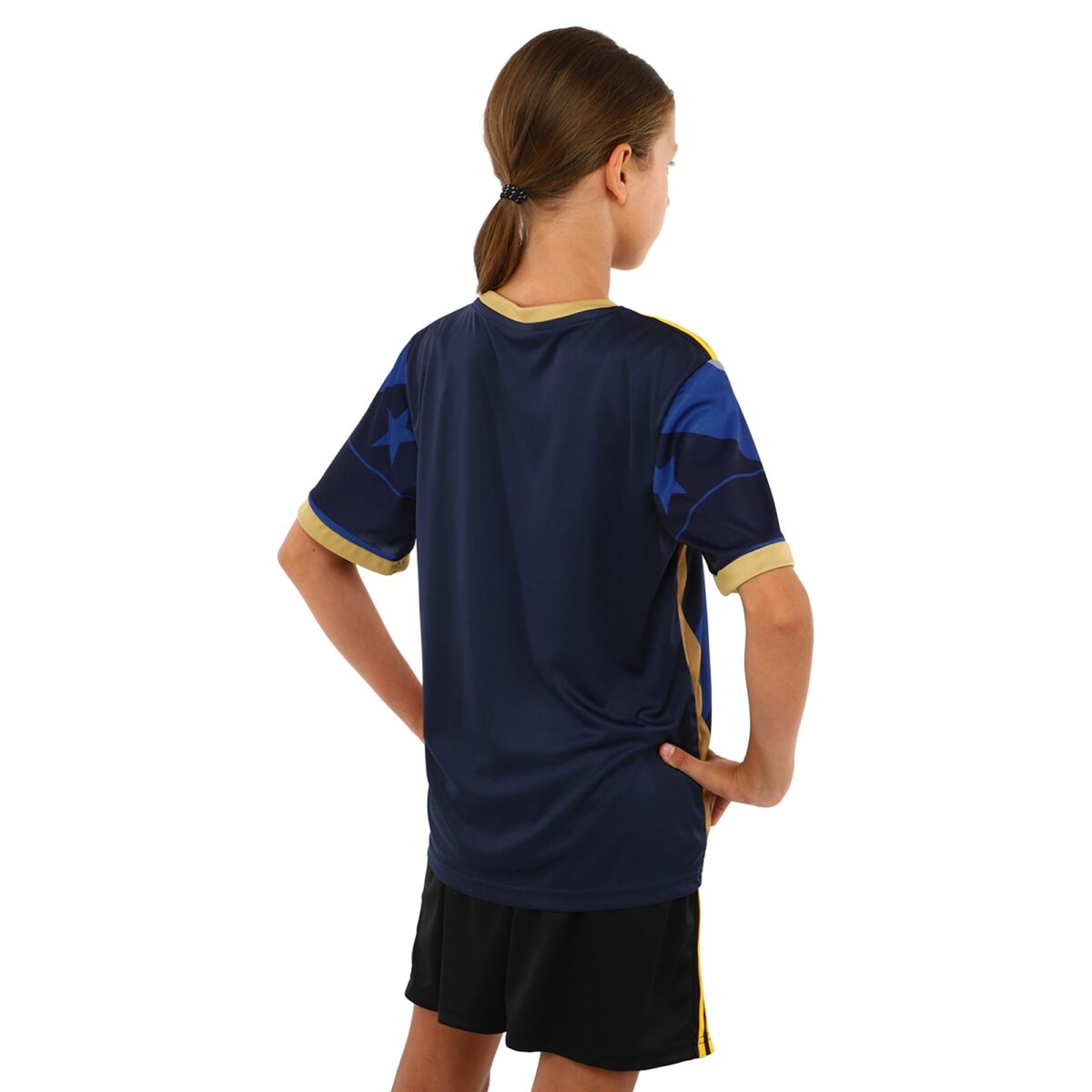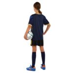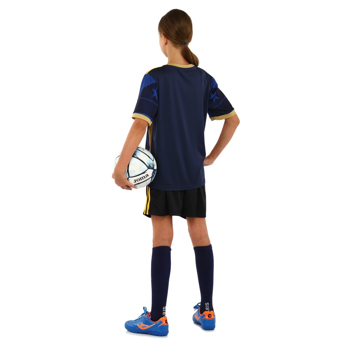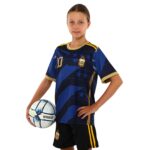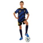 Детская футбольная форма состоит из двух элементов – футболки и шорт. Материал, используемый для изготовления формы, — полиэстер. Он обеспечивает превосходную вентиляцию и быстрое высыхание, что особенно важно при интенсивных физических нагрузках. Полиэстер также обладает высокой износостойкостью и устойчивостью к сминанию, что делает форму долговечной и удобной в носке.