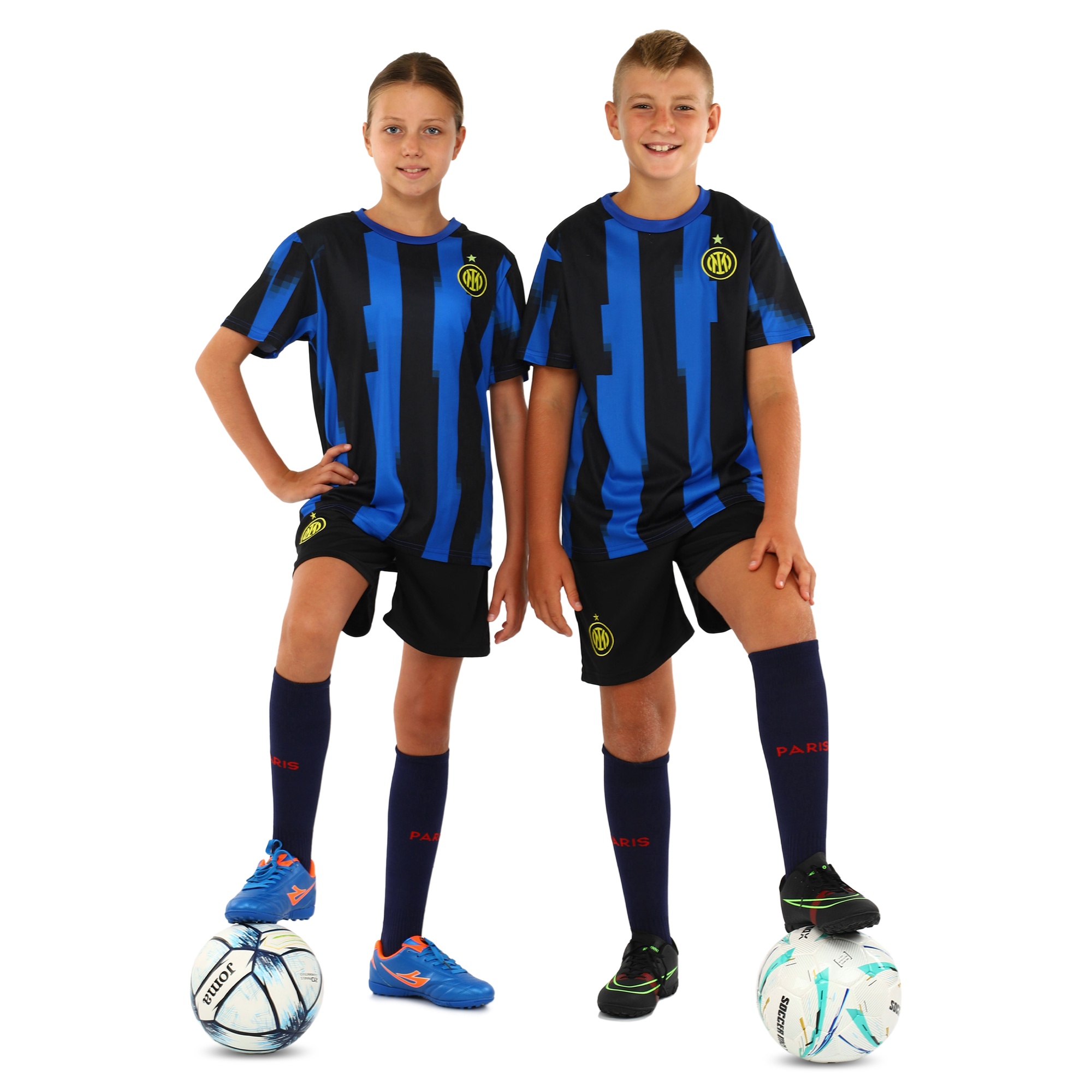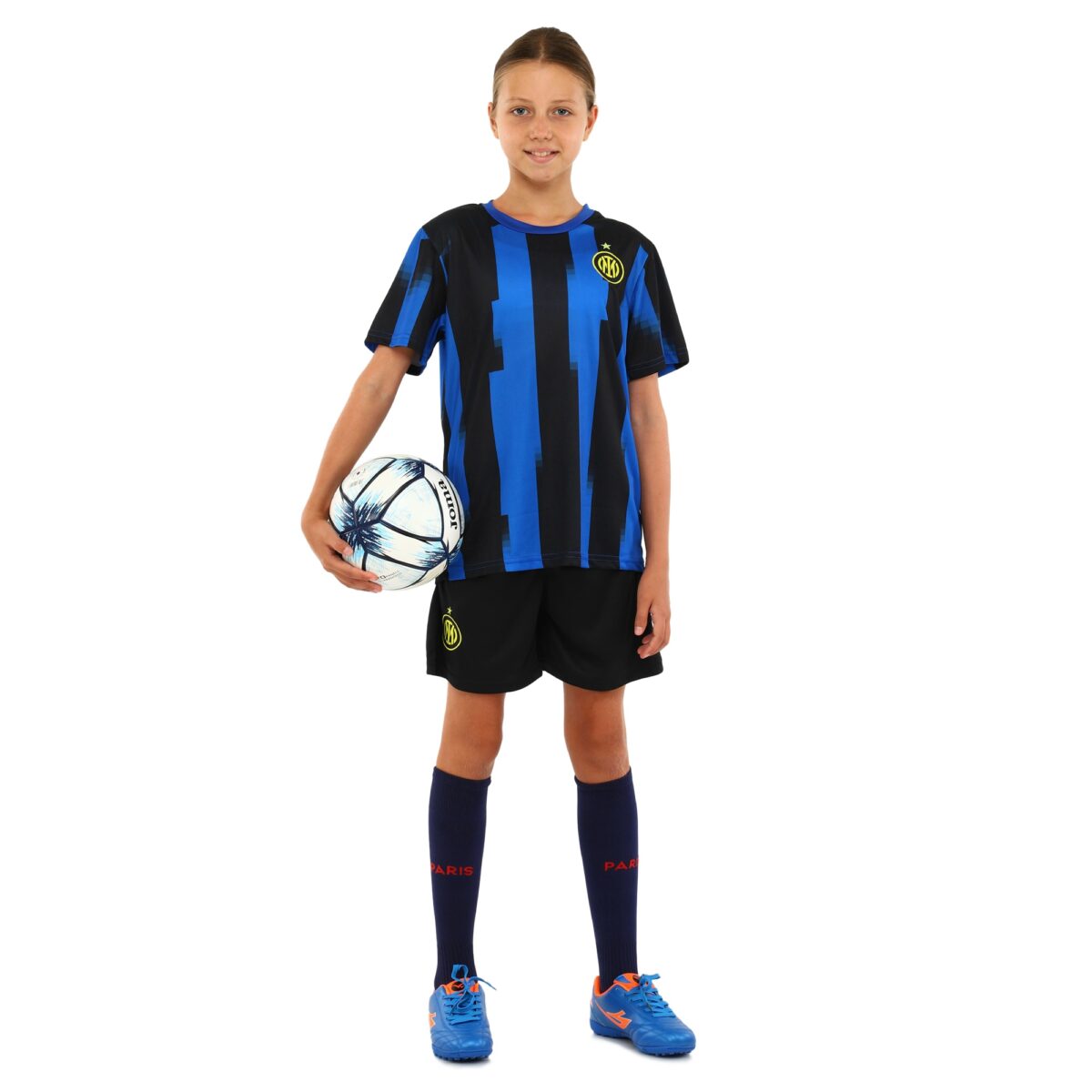 Детская форма с символикой ФК INTER MILAN предназначена для детей, которые занимаются футболом на любительском или профессиональном уровне. Комплект будет актуальным как на тренировках, так и на официальных матчах.