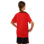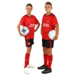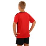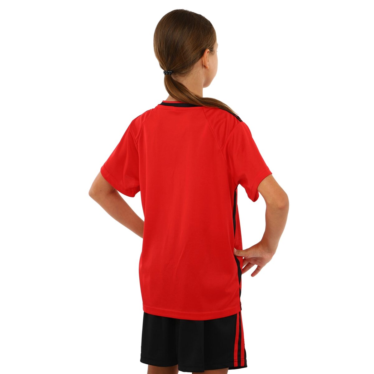 Детская форма состоит из футболки и шорт, выполненных из полиэстера, который обеспечивает отличную воздухопроницаемость и комфорт при носке. Материал также быстро высыхает после стирки, что делает эту форму идеальным выбором для активных детей.