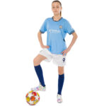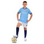 Особое внимание стоит уделить дизайну формы, который выполнен в традиционных цветах домашней экипировки Manchester City. Шорты классической длины с внутренним шнурком обеспечивают идеальную посадку и удобство во время движений, позволяя ребенку чувствовать себя уверенно и комфортно. Футболка с удобной горловиной не сковывает движений и не вызывает дискомфорта, что делает тренировочный процесс или игровую активность легким и непринужденным.
