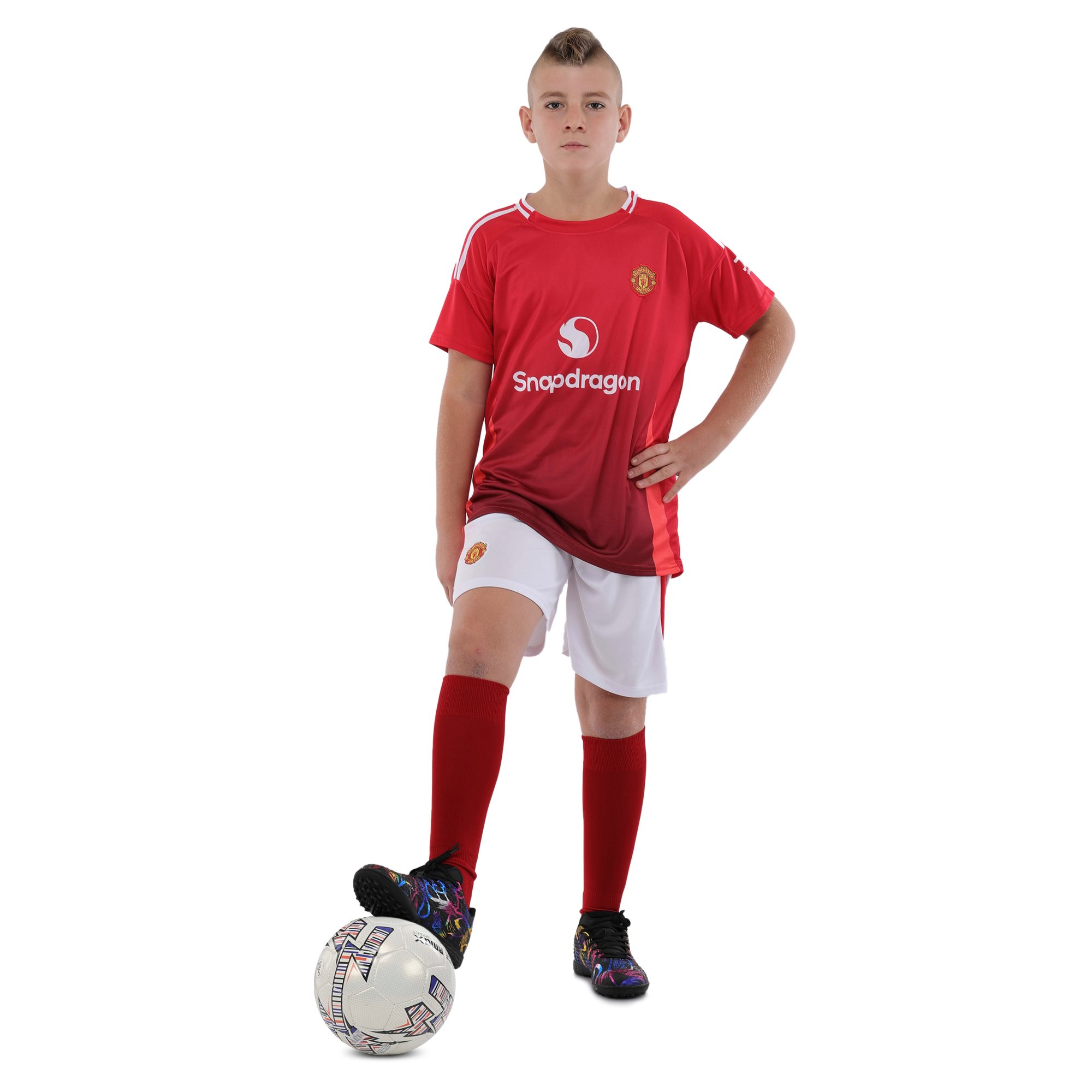 Каждому юному футболисту важна форма, которая не только демонстрирует клубные цвета, но и дарит комфорт и свободу движений на протяжении всей игры. Эта форма с эмблемой клуба Manchester United создана для тех, кто хочет показать свою преданность команде и чувствовать себя на поле как настоящие профессионалы. Комплект состоит из футболки и шорт, продуманных до мелочей: футболка удобно облегает корпус, не сковывая движений, а шорты на широком поясе со шнуровкой надежно фиксируются, обеспечивая комфорт и устойчивость даже при интенсивных нагрузках.