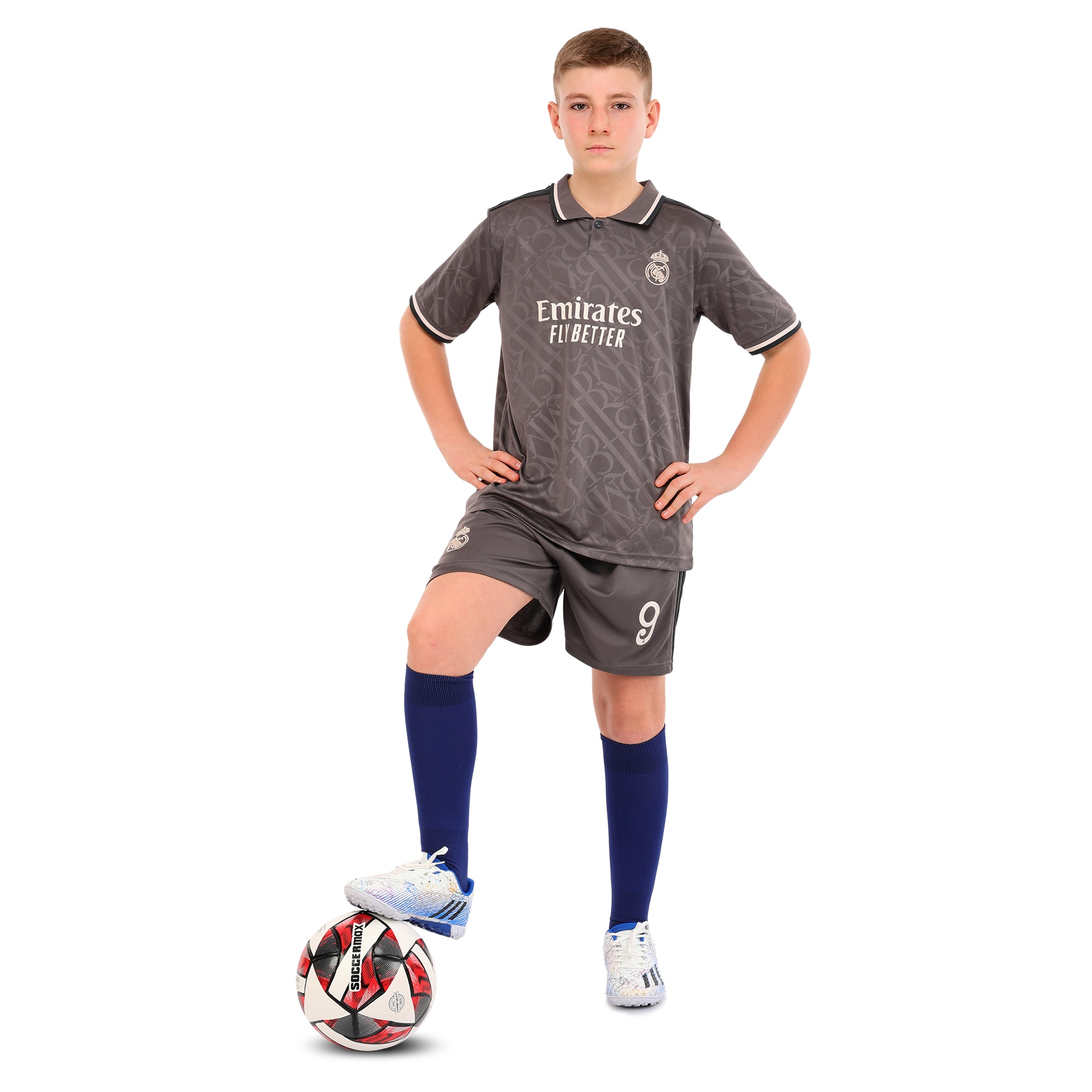 Каждый ребенок мечтает носить форму своего кумира, и теперь это возможно! Этот комплект, включающий футболку и шорты, выполнен в стильном резервном дизайне 2025 года, подчеркивая современные тенденции футбольной моды. На спине футболки красуется фамилия Mbappe и его игровой номер 9, что делает ее еще более ценной для фанатов клуба Real Madrid.