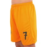 Комплект включает футболку и шорты. Футболка выполнена в классическом спортивном крое с круглым воротом, что обеспечивает удобную посадку и не сковывает движений во время игры. Легкий и дышащий материал способствует хорошей вентиляции, предотвращая перегрев даже во время самых интенсивных матчей. Шорты средней длины имеют внутренний шнурок, позволяющий идеально подогнать посадку, что особенно важно для активного ребенка.