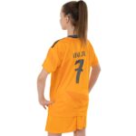 Ткань формы изготовлена из высококачественного полиэстера — материала, который быстро отводит влагу, сохраняя комфорт на протяжении всей игры. Он устойчив к износу, легко стирается и быстро сохнет, что делает форму практичным выбором для частого использования. Размерный ряд позволяет подобрать идеальную посадку для детей разного возраста.