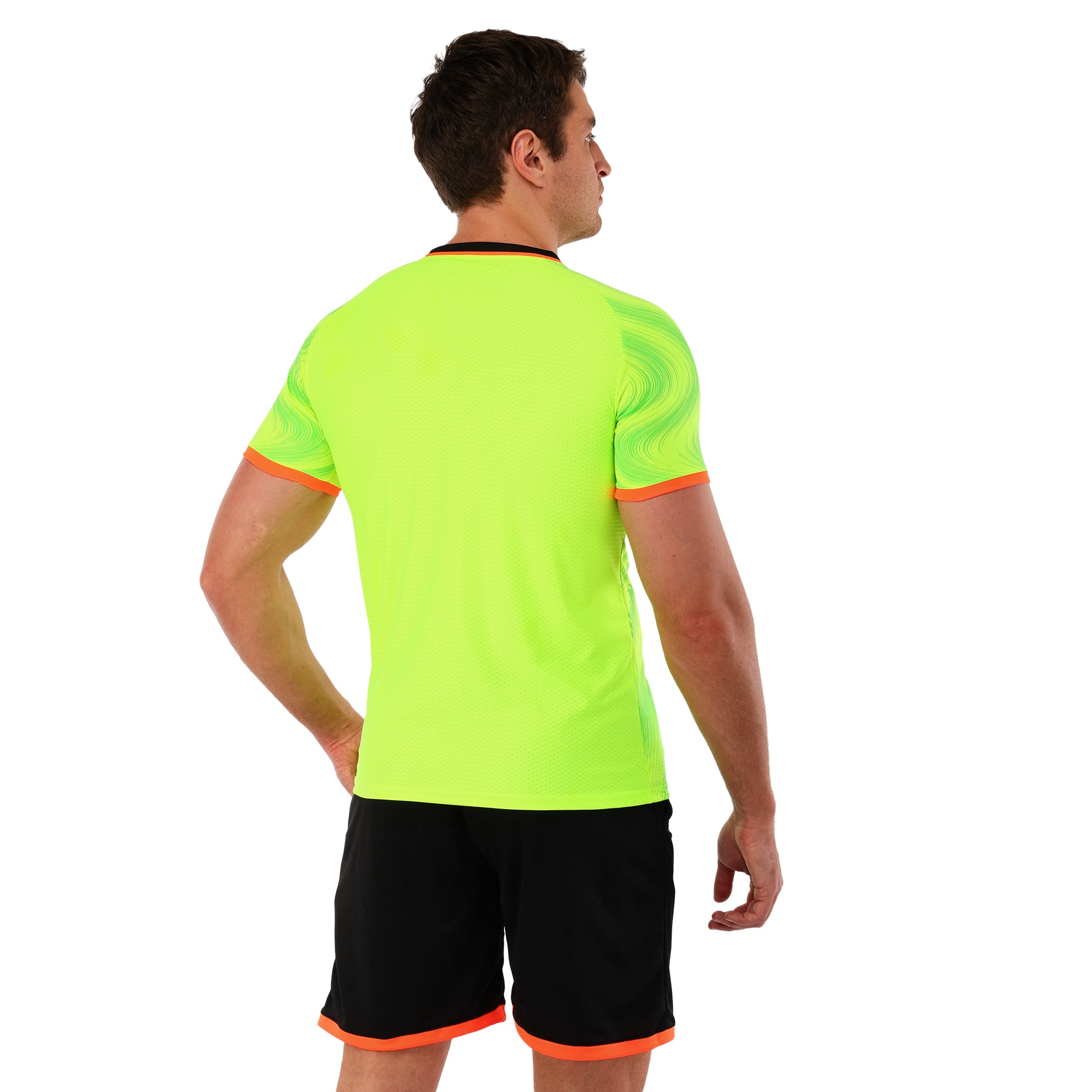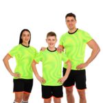 Комплект включает в себя футболку и шорты, которые создают гармоничный и удобный образ для игры в футбол. Футболка с удобной горловиной обеспечивает комфорт даже при активных движениях, не сдавливает шею и не мешает дыханию. Ее ткань эффективно отводит влагу, предотвращая перегрев и поддерживая ощущение свежести на протяжении всей игры.