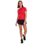 - Материал полиэстера активно отводит влагу от тела, помогая поддерживать ощущение сухости даже во время интенсивных занятий. Это особенно важно в жаркую погоду или при интенсивных физических нагрузках.