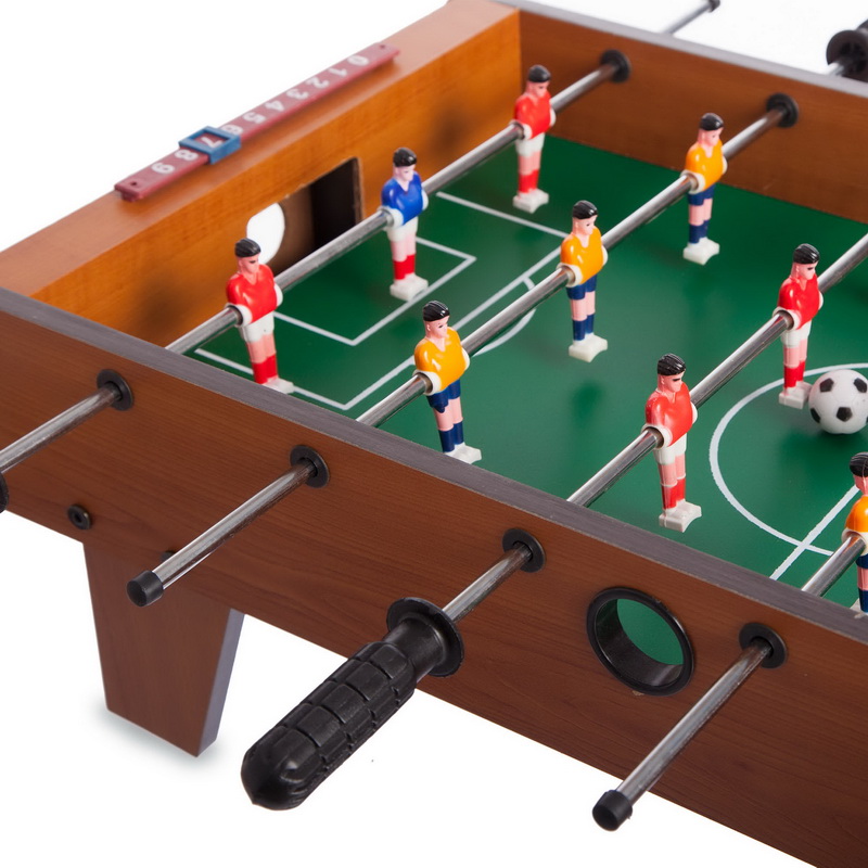 Настольный высококачественный футбол, который сочетает в себе прочную конструкцию и отличные игровые характеристики. Игровое поле выполнено из гладкого и прочного материала, обеспечивая быстрое движение мяча и плавные проходы штанг. Штанги, оснащенные удобными рукоятками, позволяют точно управлять игроками и выполнять сложные удары по воротам соперника. Конструкция настольного футбола обеспечивает прочность и устойчивость, что позволяет играть с максимальной интенсивностью без опасений повредить стол. Встроенные счетчики с обеих сторон позволяют легко отслеживать результаты, сохраняя игровую атмосферу на предельно высоком уровне.