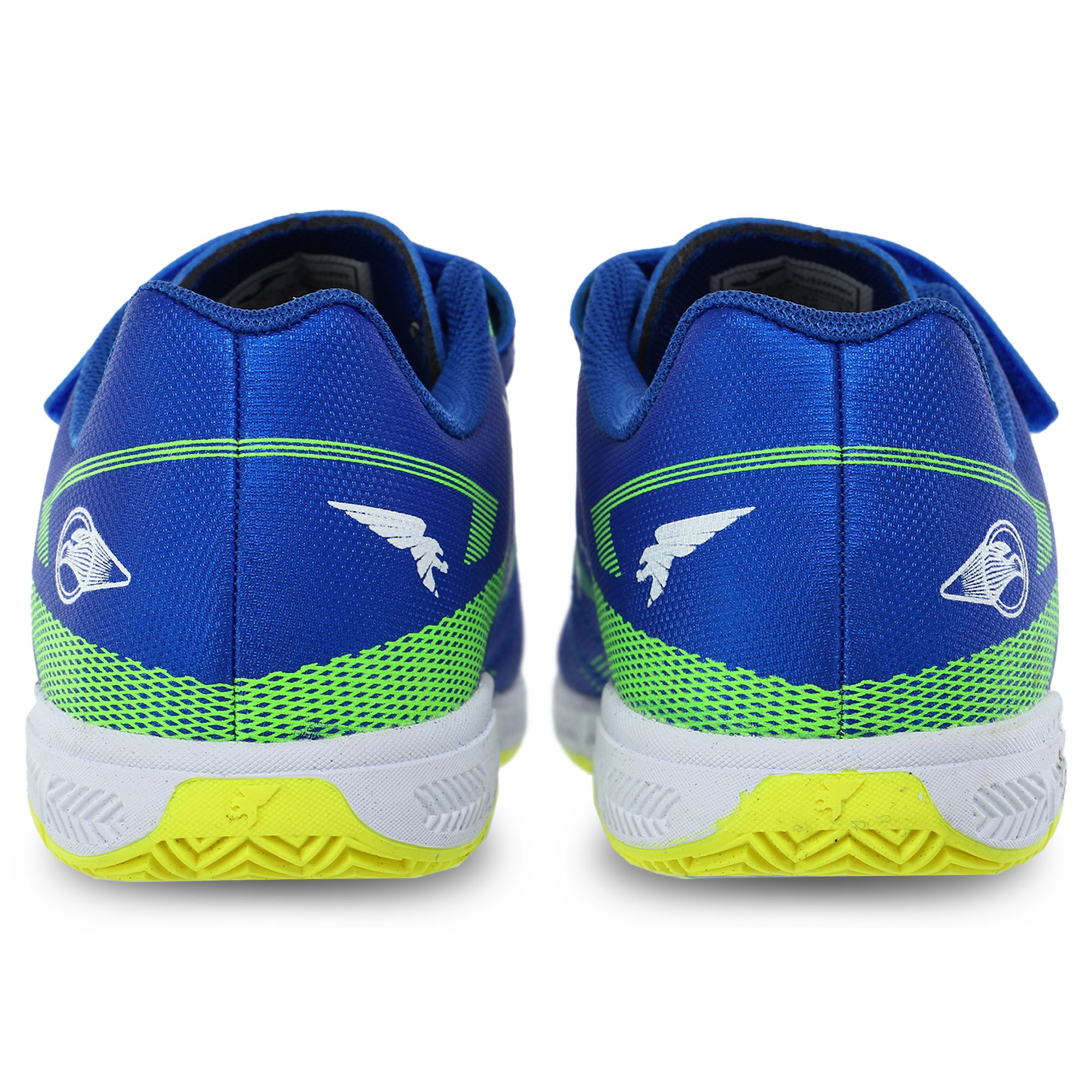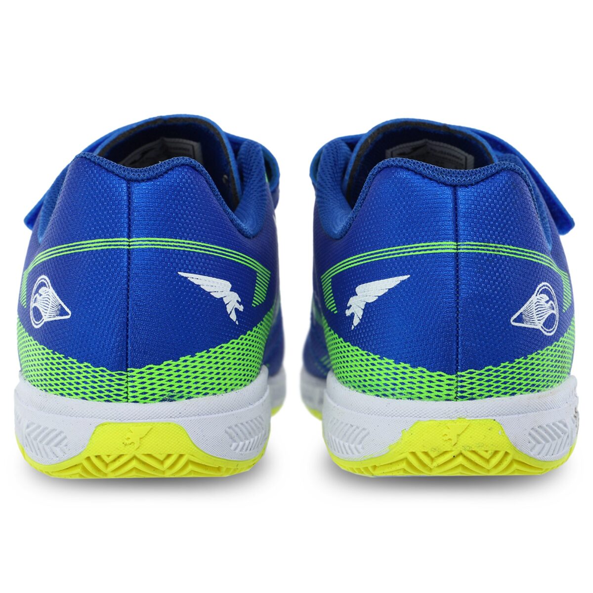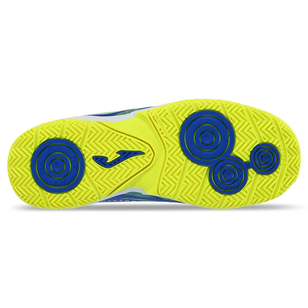 Резиновая подошва обуви для мини-футбола обеспечивает хорошее сцепление с гладкими поверхностями и не оставляет на них следов. Она покрыта протектором с круглым рисунком для вращательных и разноплановых движений. Удобная фиксация с застежкой-липучкой очень проста в использовании и надежно удерживает обувь на месте.