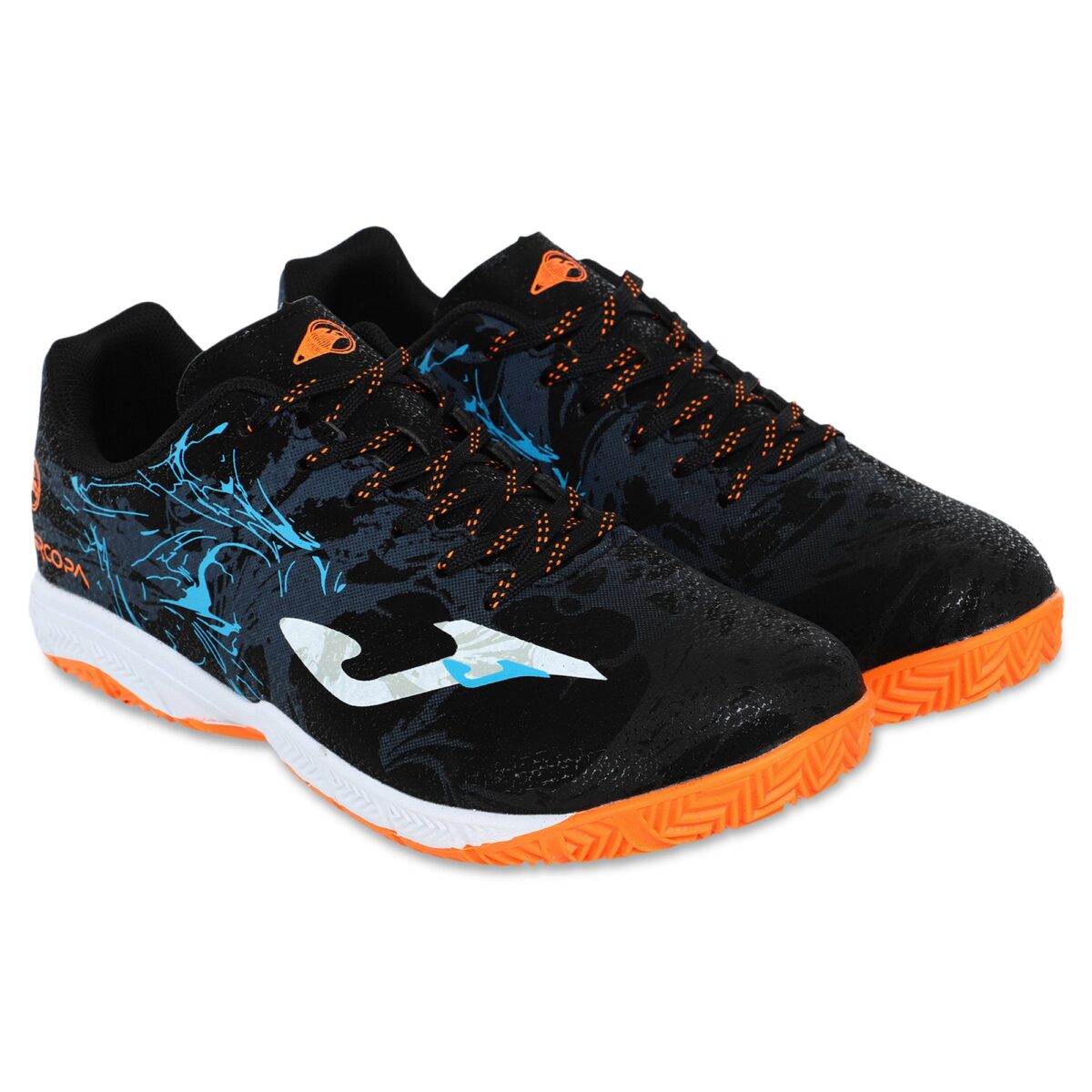 Детская обувь для футзала Joma SUPER COPA изготовлена из искусственной кожи высокого качества. Материал обладает высокой прочностью. Подошва изготовлена из резины. Специальный рисунок протектора способствует хорошему сцеплению с покрытием и обеспечивает маневренность игрока. Обувь предназначена для использования на гладких поверхностях. Обувь для мини-футбола выполнена в классическом дизайне, для фиксации на ногах предусмотрена шнуровка. На передней части ботинка присутствует большой логотип бренда Joma. Для защиты пятки от травм и ударов предусмотрена стойка Exo Counter.