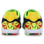 В верхней части футзалок присутствуют сетчатые вставки из дышащей ткани для защиты от перегрева и дополнительного комфорта во время носки. Отрегулировать посадку позволяют яркие шнурки.