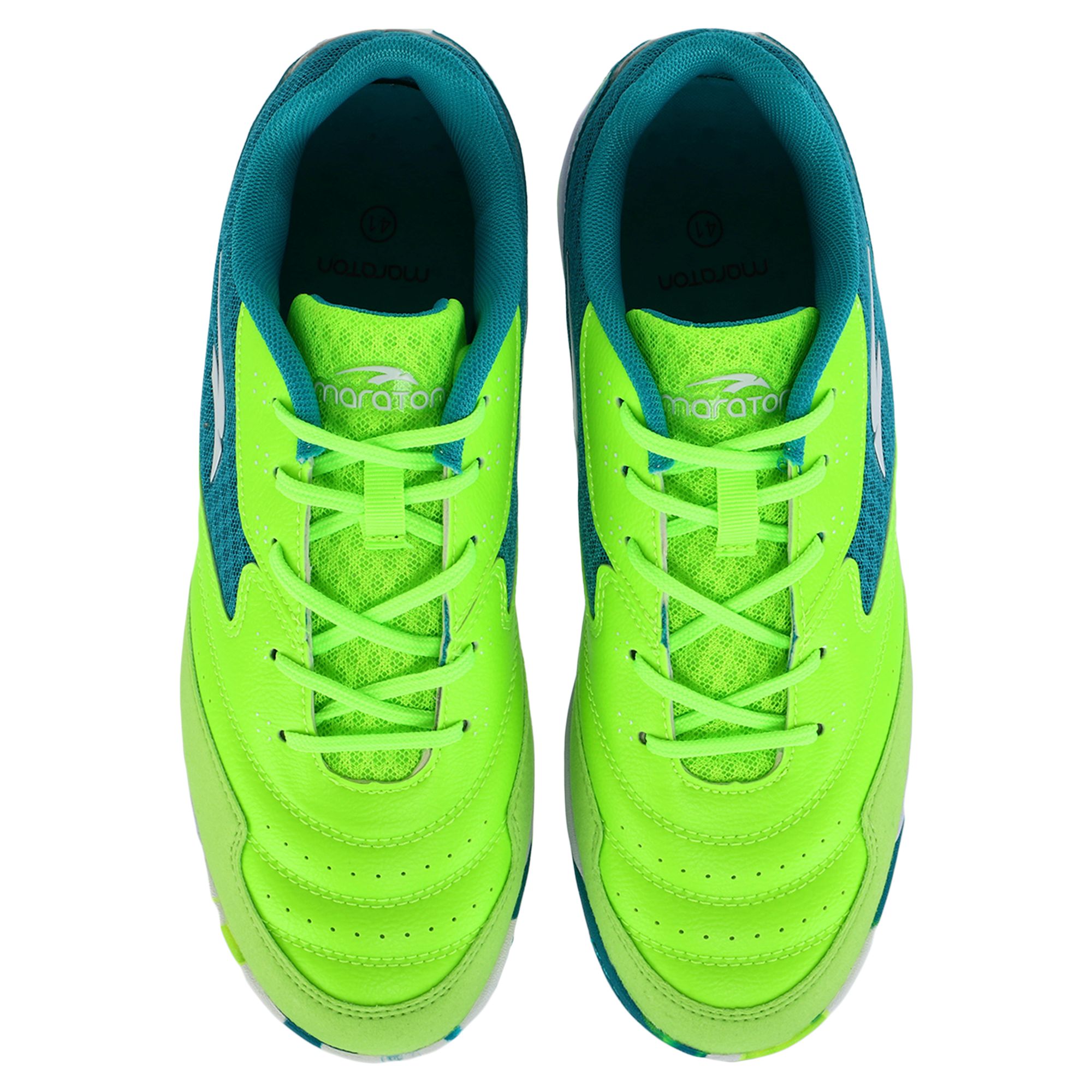 Мужские футзалки MARATON выполнены из прочного полиуретана с усилением в носке и пяточной зоне. Боковая панель и язычок выполнены из мембраны, которая обеспечивает постоянную циркуляцию воздуха и помогает сохранить ноги сухими и прохладными во время игры.