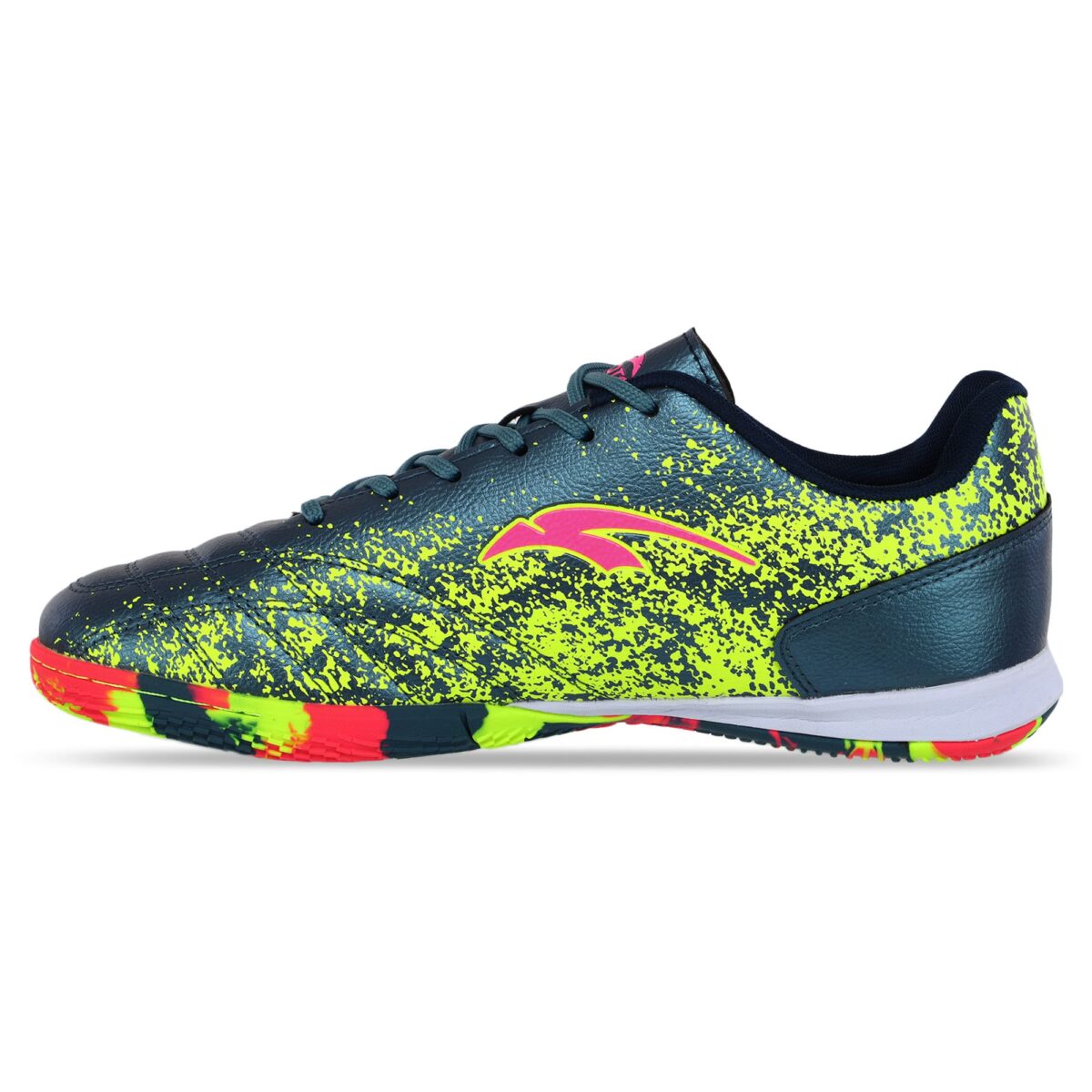 Верх футзалок выполнен из полиуретана. Синтетический материал обеспечивает поддержку стопы, не создавая дополнительной нагрузки. Регулировать посадку можно с помощью шнуровки. Резиновая подошва обеспечивает достаточную амортизацию, защищая суставы игрока от ударной нагрузки во время бега. Рисунок протектора позволяет выполнять сложные маневры и контролировать каждое движение благодаря хорошей сцепляемости с полом.