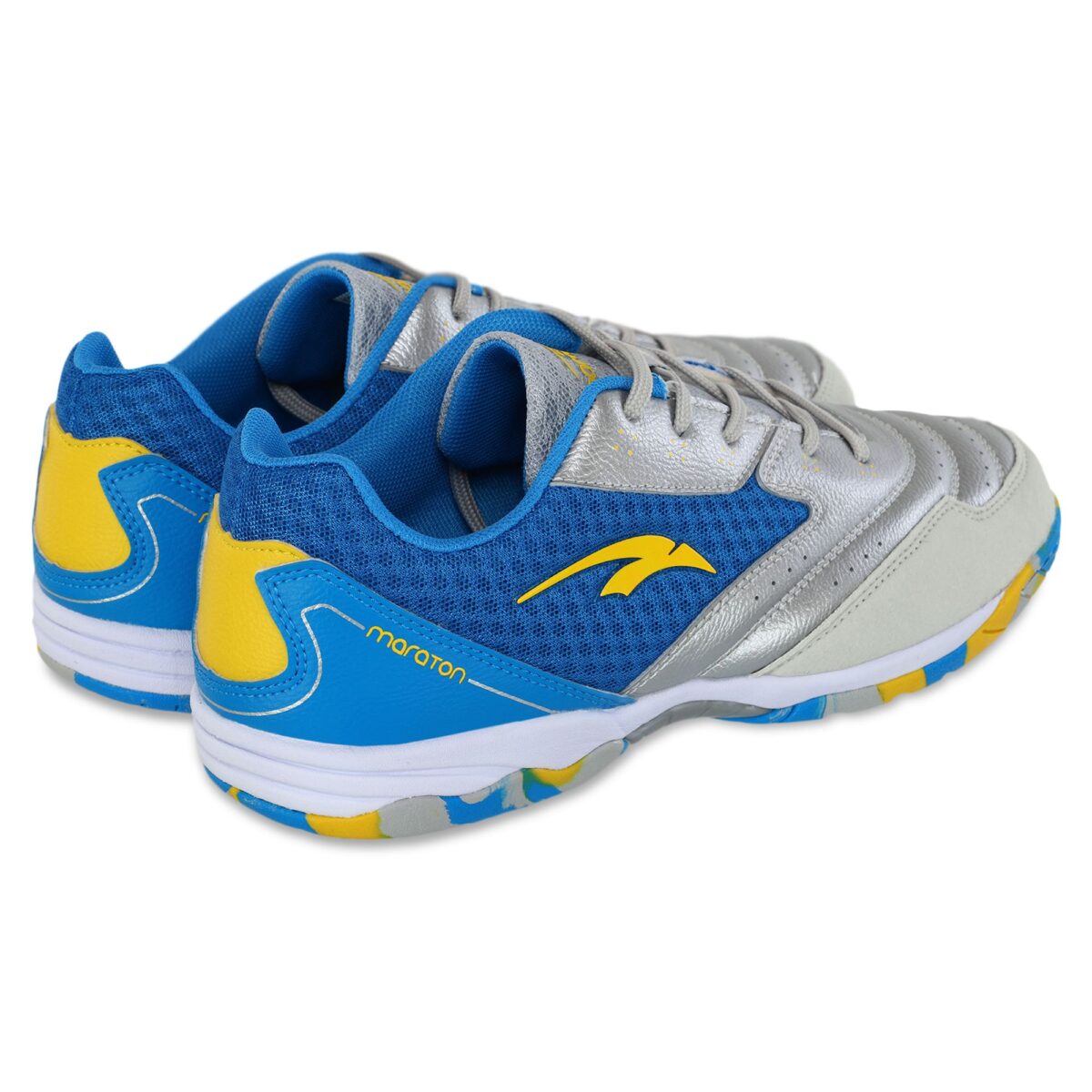 Мужские футзалки MARATON выполнены из прочного полиуретана с усилением в носке и пяточной зоне. Боковая панель и язычок выполнены из мембраны, которая обеспечивает постоянную циркуляцию воздуха и помогает сохранить ноги сухими и прохладными во время игры.