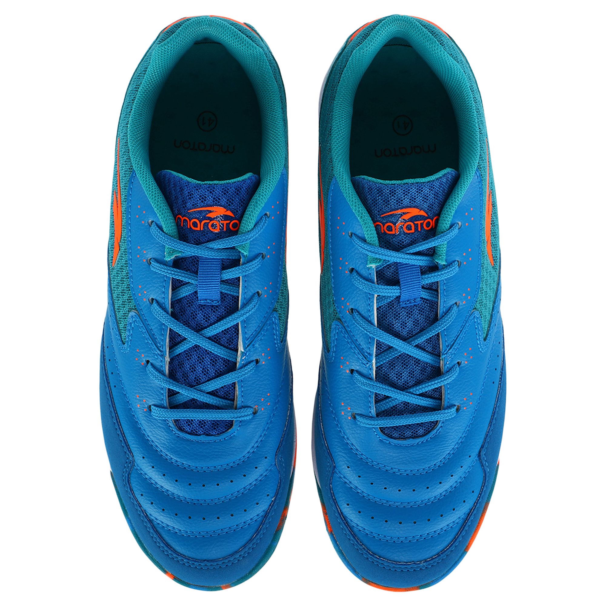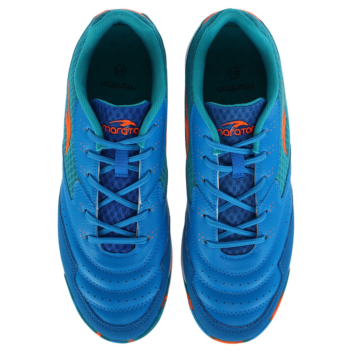Мужские футзалки MARATON выполнены из прочного полиуретана с усилением в носке и пяточной зоне. Боковая панель и язычок выполнены из мембраны, которая обеспечивает постоянную циркуляцию воздуха и помогает сохранить ноги сухими и прохладными во время игры.